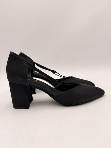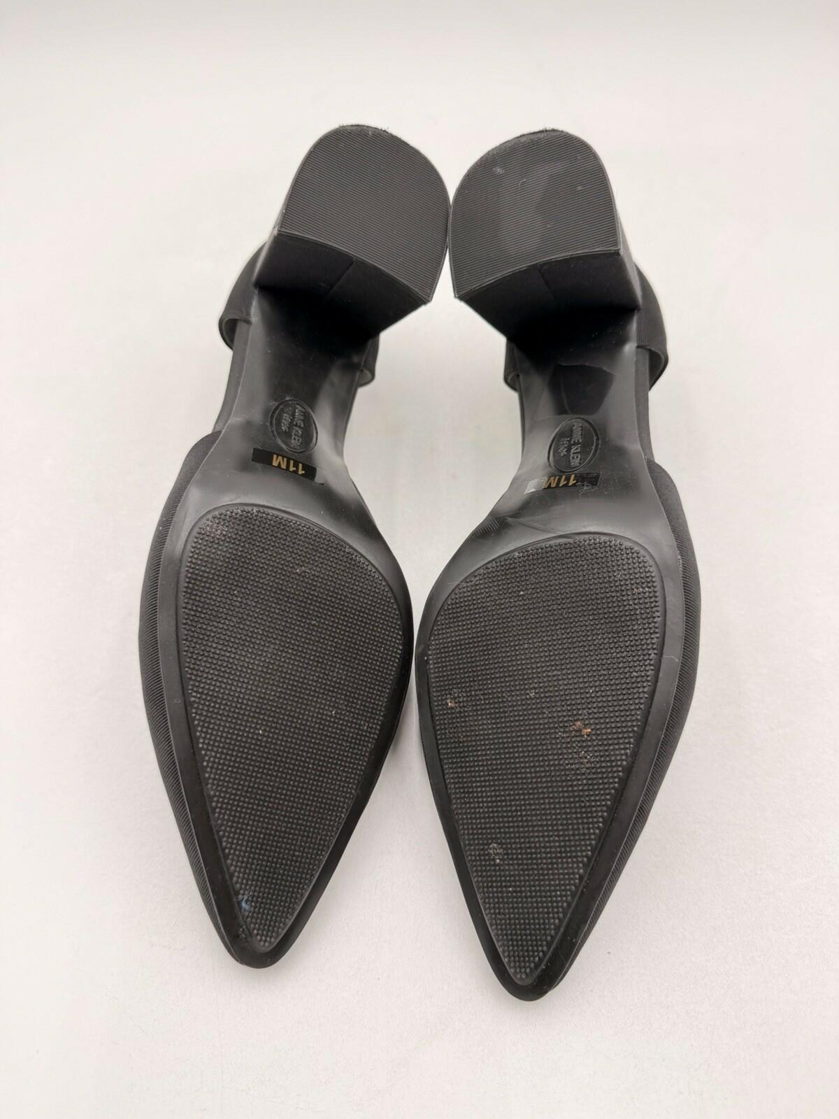 The Women's Anne Klein Baylie Slip On Block Ankle Heels in size 11 are stylish and sleek black pumps with a pointed toe and a high block heel. Perfect for going out, these heels feature a slip-on closure for easy wear. Made of synthetic material, these heels are a classic and timeless addition to any woman's wardrobe. The Anne Klein Baylie model is known for its quality and sophistication, making it a must-have for any fashion-forward individual.