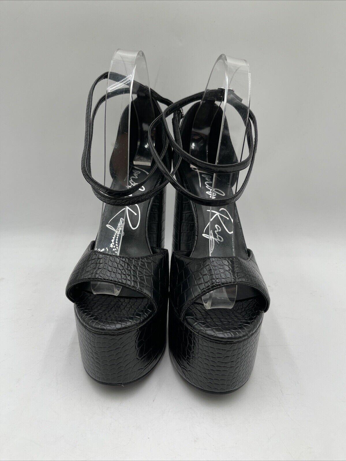 Women’s London Rag Alice Croc Platform Heeled Sandals Black Size 8 - Very Good