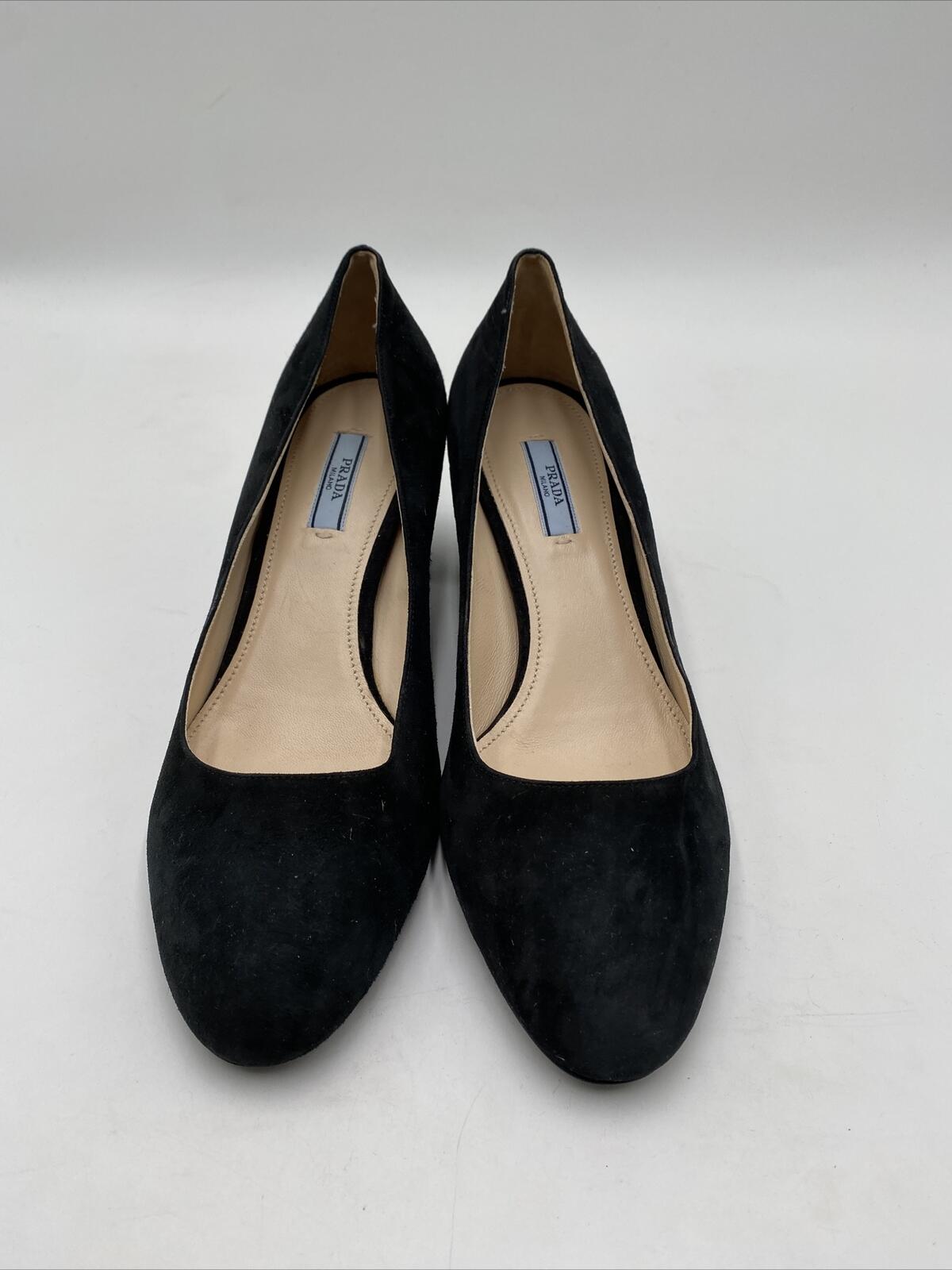 Women’s Prada Block-Heel Suede Pumps Black Size 39 - Very Good - Ufashion