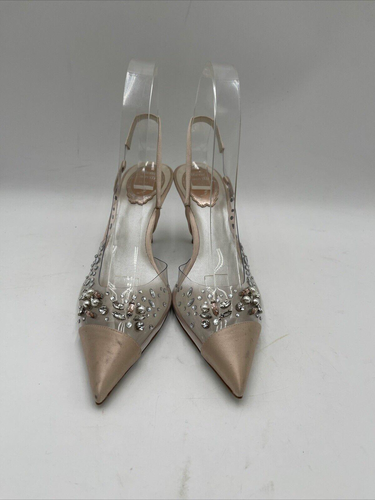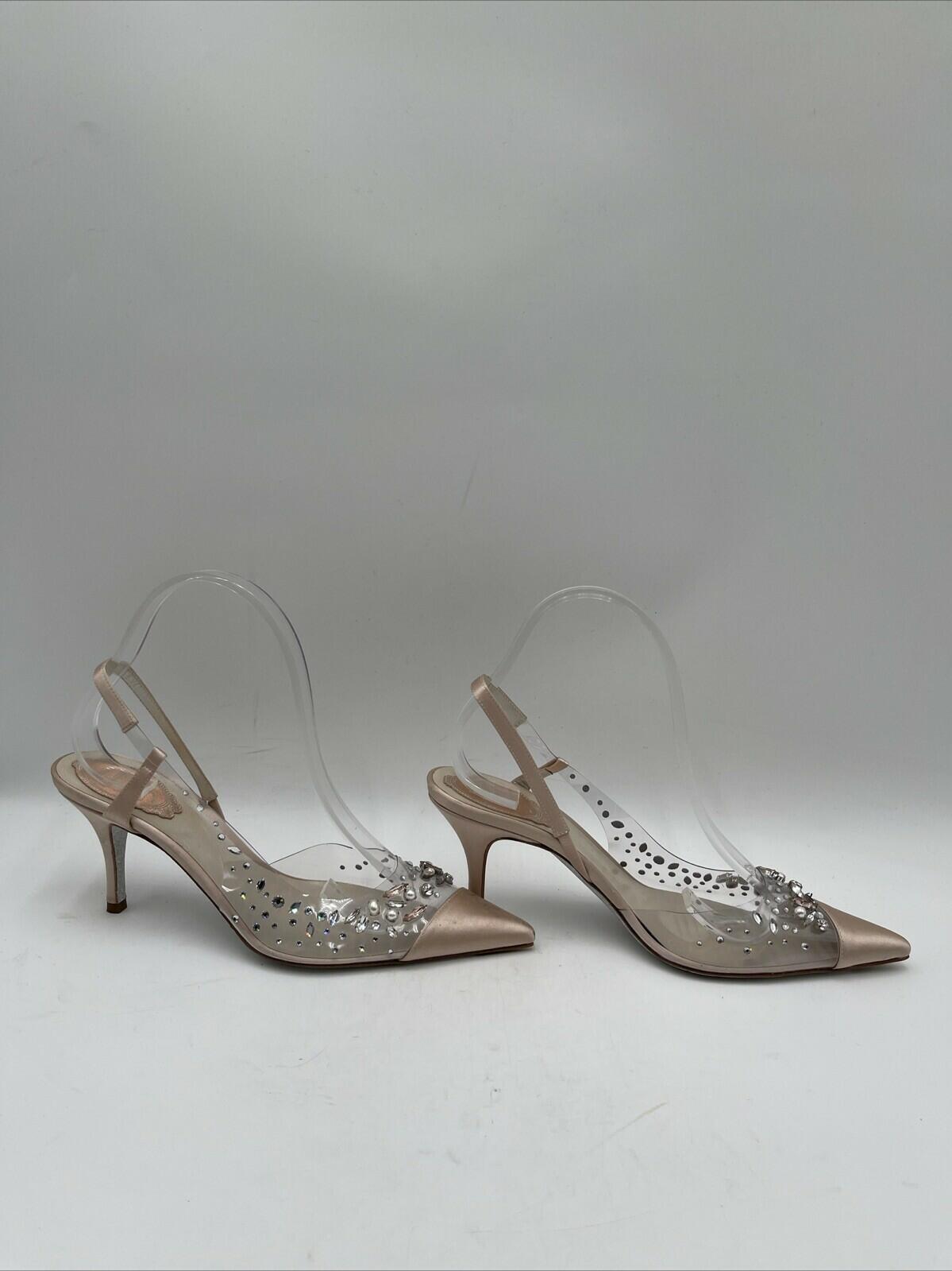 Women’s Rene Caovilla Slingback Heels Beige Size 37.5 - Very Good