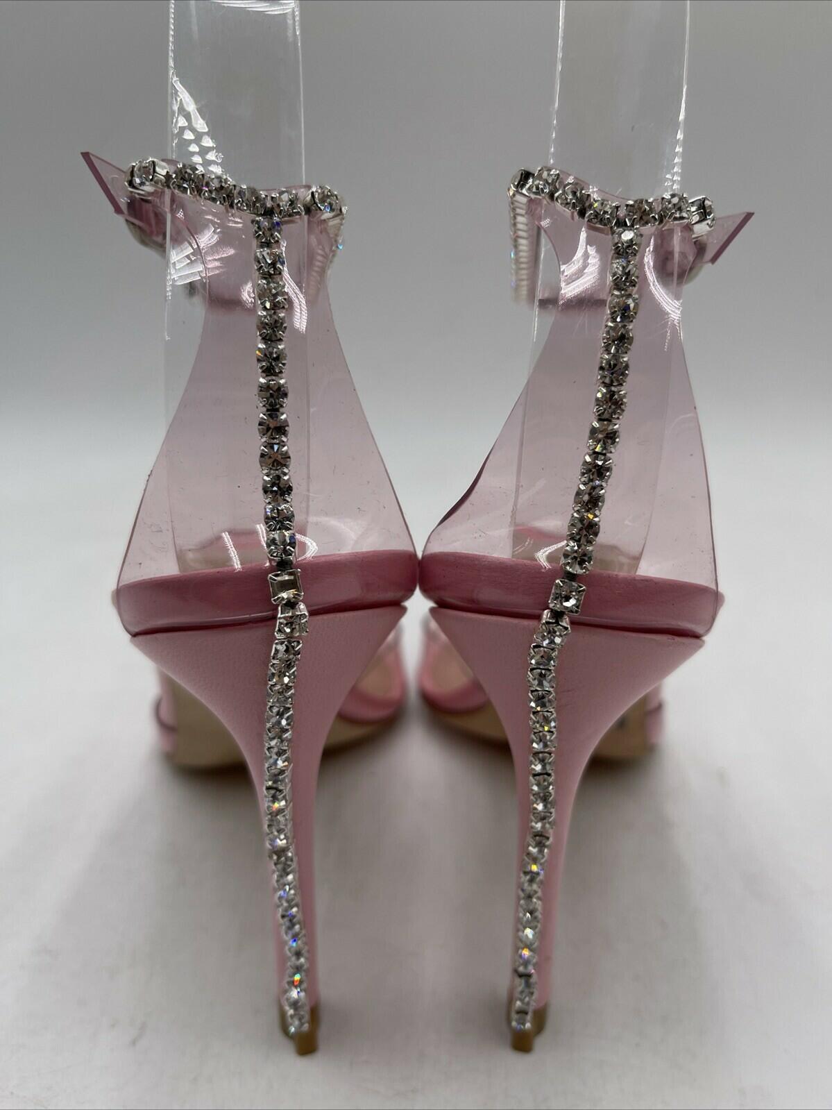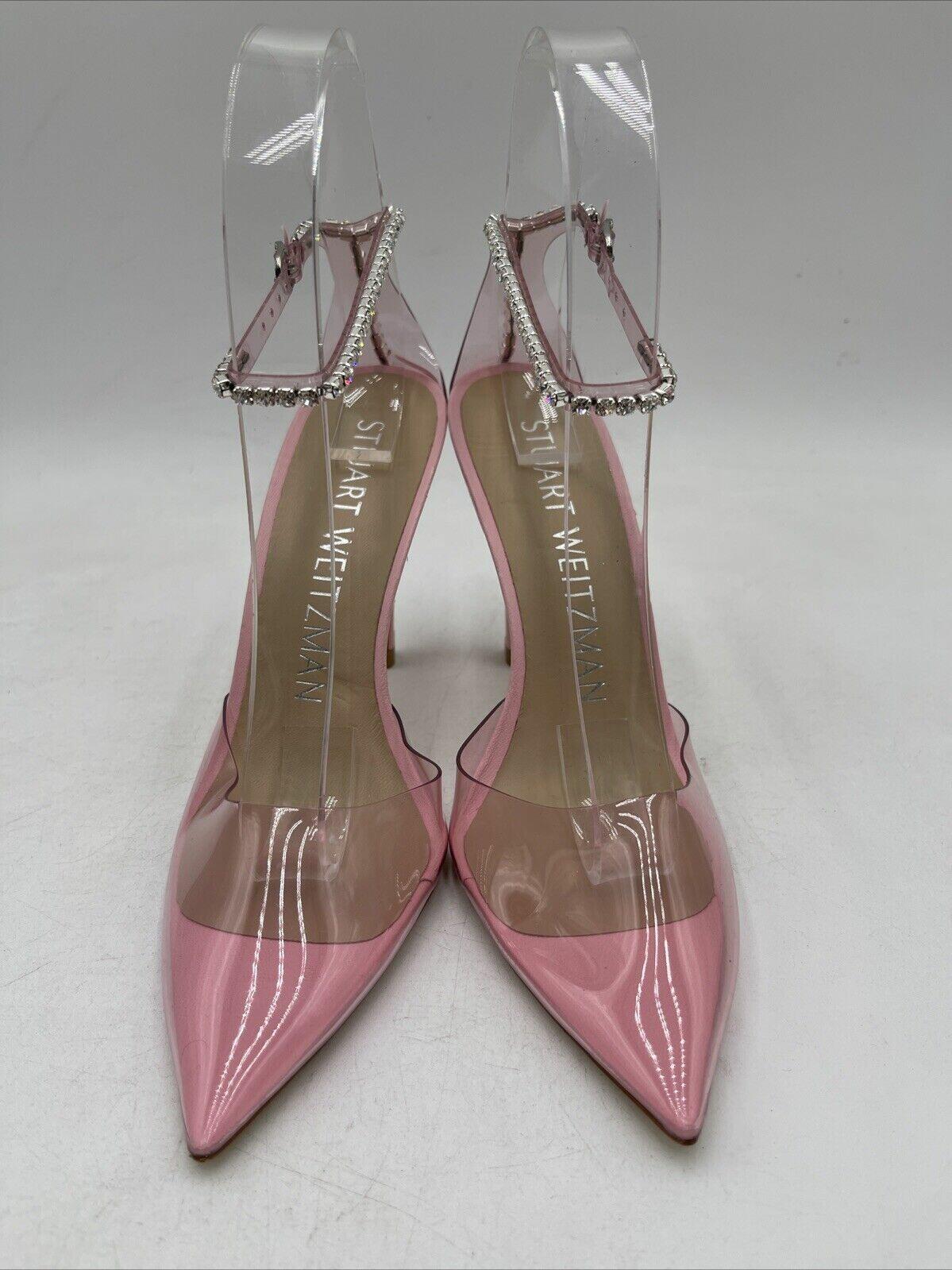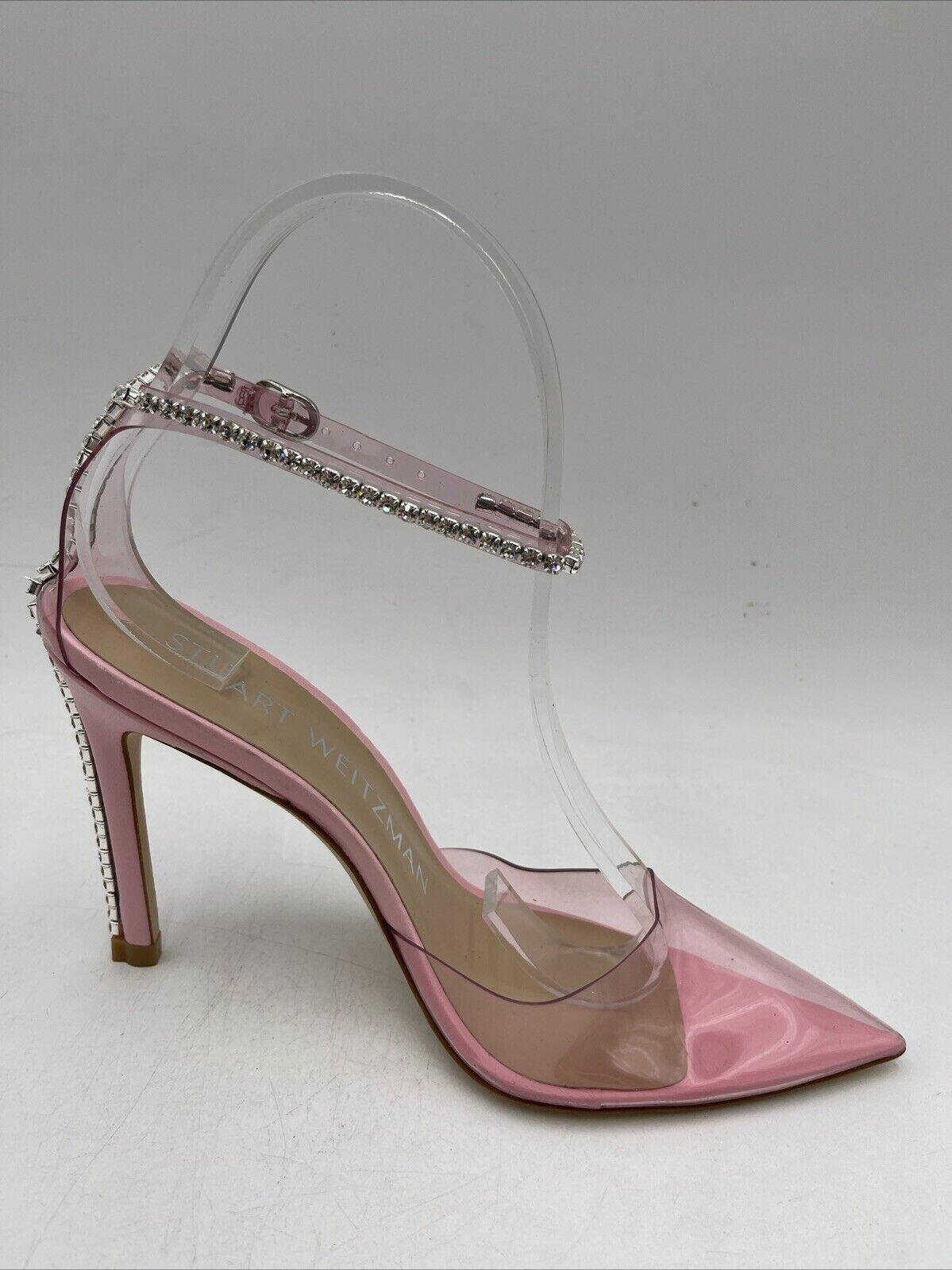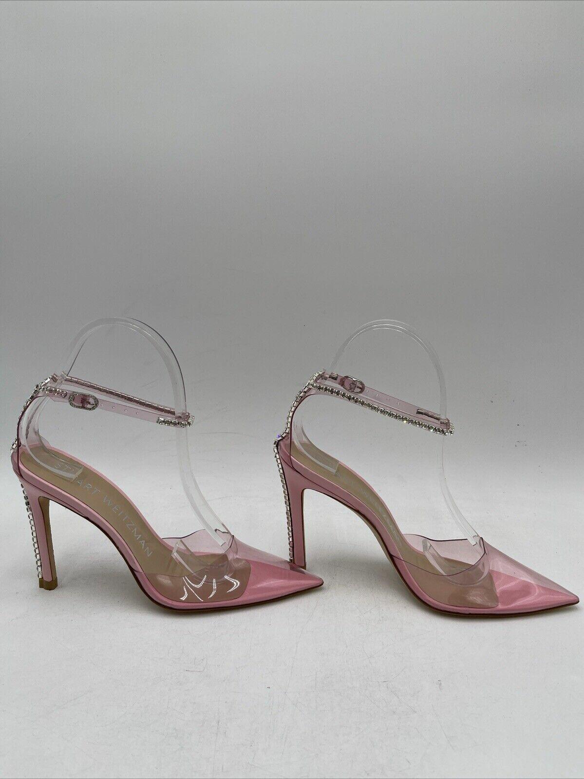 Elevate your shoe collection with these stunning Stuart Weitzman pumps. The pink ankle strap pumps feature a pointed toe and ultra-high stiletto heel, adding a touch of glamour to any outfit. The buckle closure ensures a secure fit, while the synthetic and leather upper material provides durability and comfort.