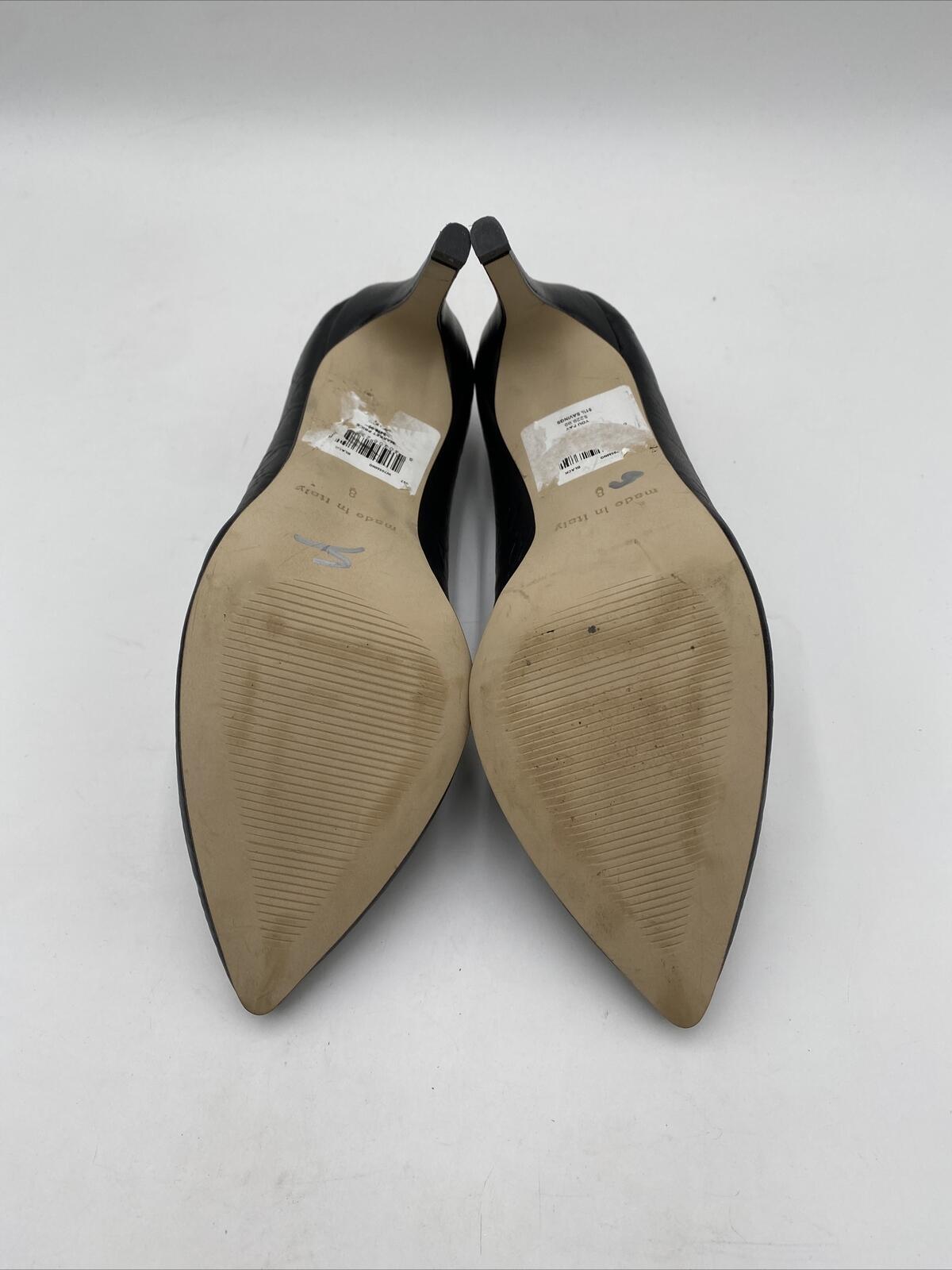 -Bottoms are lightly wornElevate your footwear collection with the elegant Womens VALENTINO BY MARIO VALENTINO Clara Logo Leather Pumps in a classic black shade. Crafted from premium leather and designed with a sleek pointed toe and secure buckle closure, these size 8 heels embody sophistication and style. The ultra-high stiletto heel adds a touch of glamour to any outfit, making these pumps perfect for celebrity-inspired looks or a chic night out.