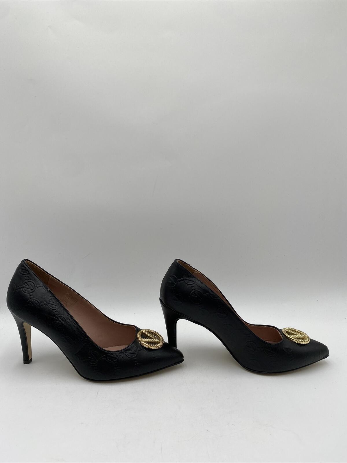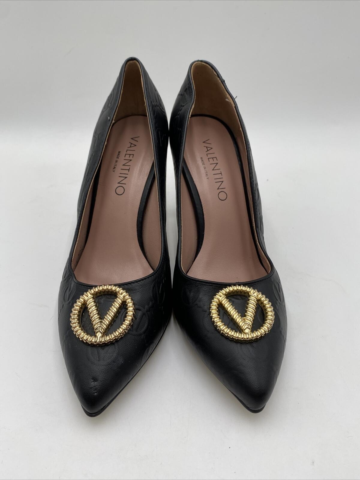 Women’s VALENTINO BY MARIO VALENTINO Clara Logo Leather Pumps Black Size 8 - Very Good
