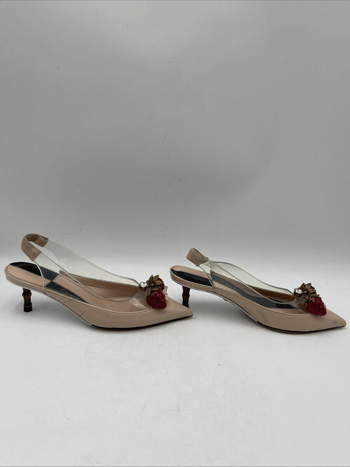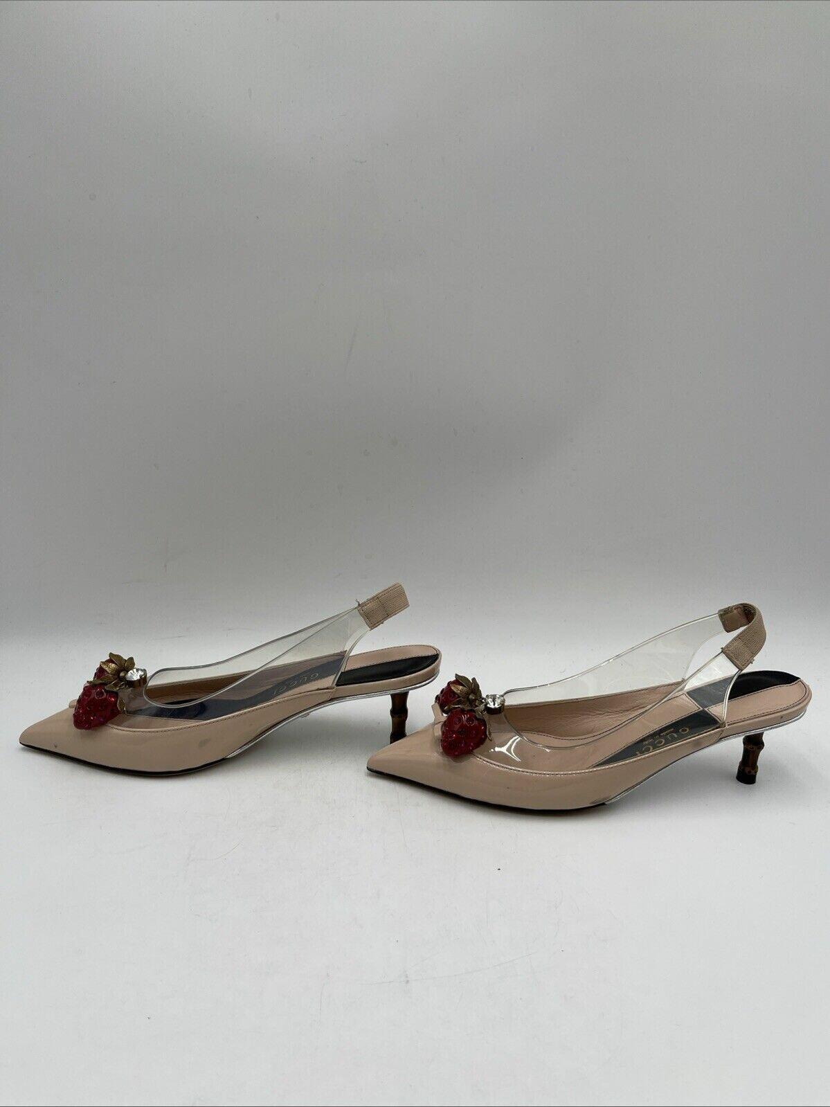 Women's Gucci Eleanor Strawberry Plexi Heels Beige Size 35 - Very Good