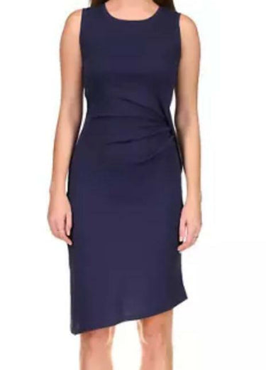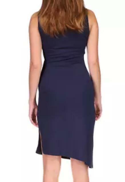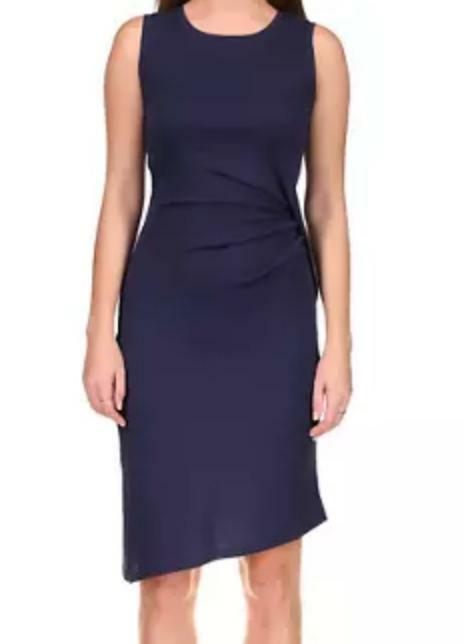 Michael Kors Petite Solid Crew Neck Drape Dress Midnight Blue Size PL (12P-14P)