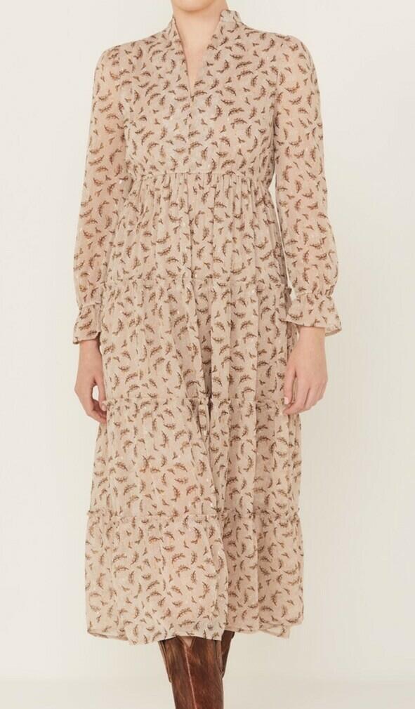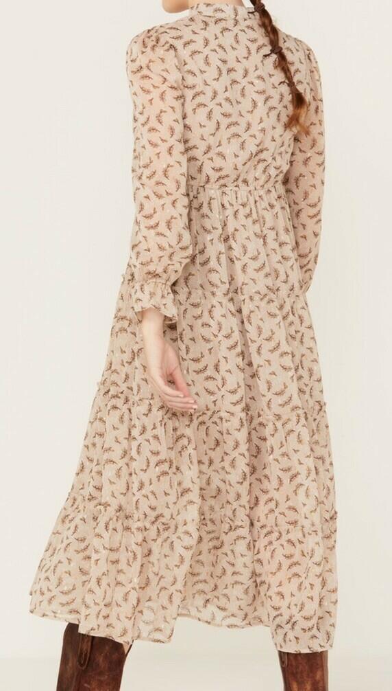 NWD Wild Moss Women's Floral Print Long Sleeve Midi Dress, Sand Size S