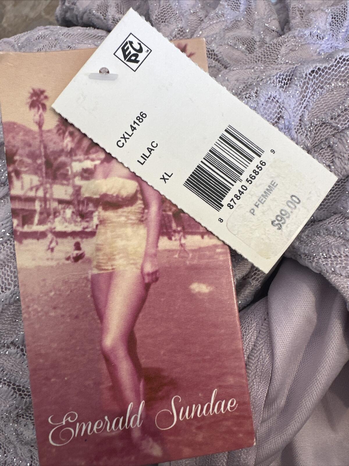 NWT Emerald Sundae Junior's Slim Allover Lace Side Slit Gown Purple Size XLarge
