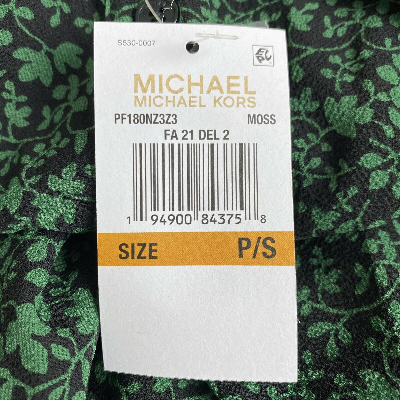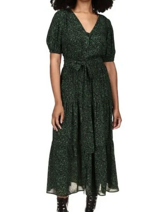 NWT Michael Kors Womens Floral Puff Sleeve Button Up Midi Dress Moss Size PS.