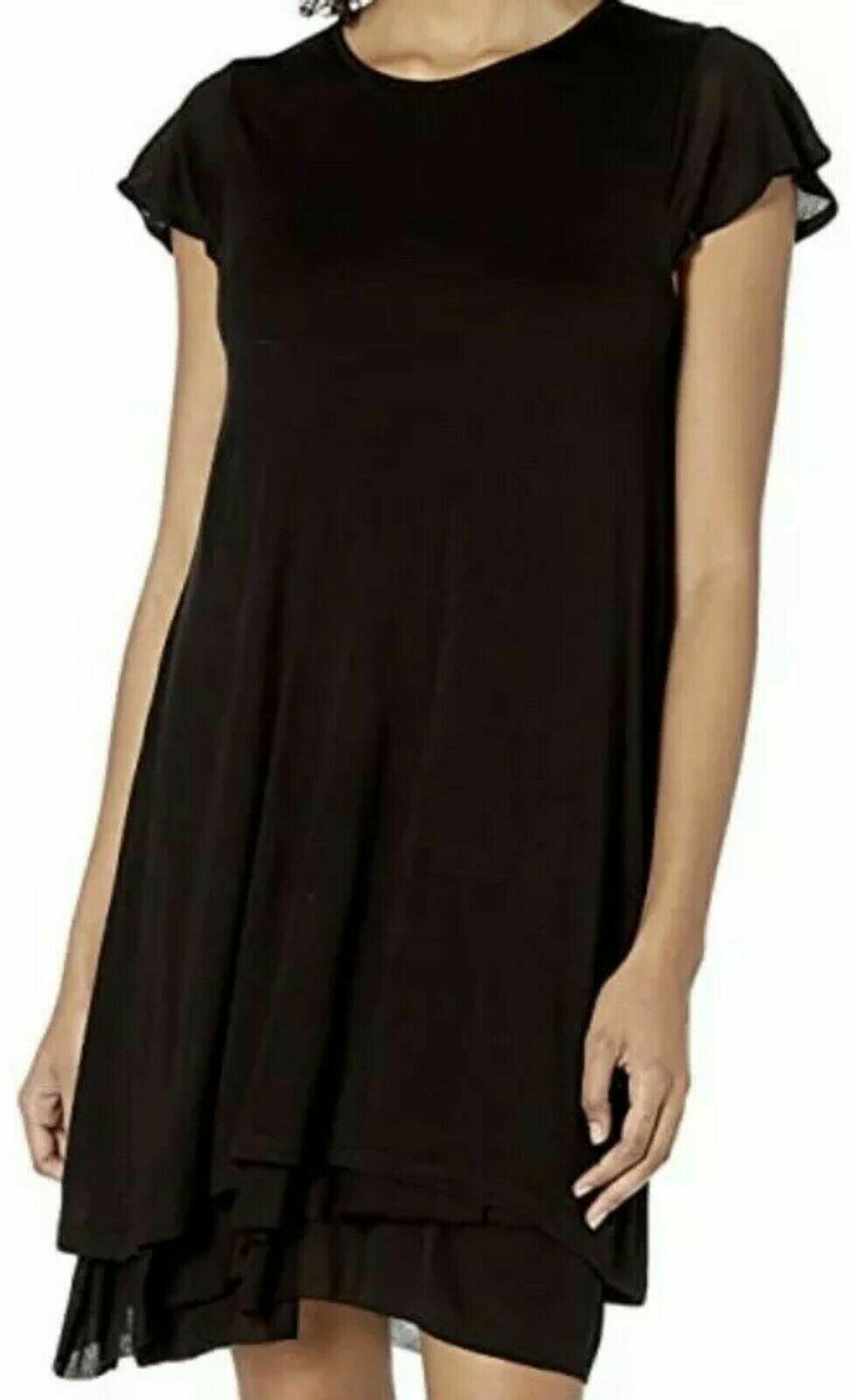 NWT Women’s kensie Sheer Viscose Layered Dress Black Size XS