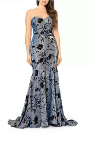 Add a touch of elegance to your wardrobe with this beautiful women's strapless mermaid gown from Blondie Nites. The dress features a gorgeous floral pattern and is made from high-quality velvet fabric that is sure to turn heads at any occasion. The dress is brand new with tags and comes in a size 13.