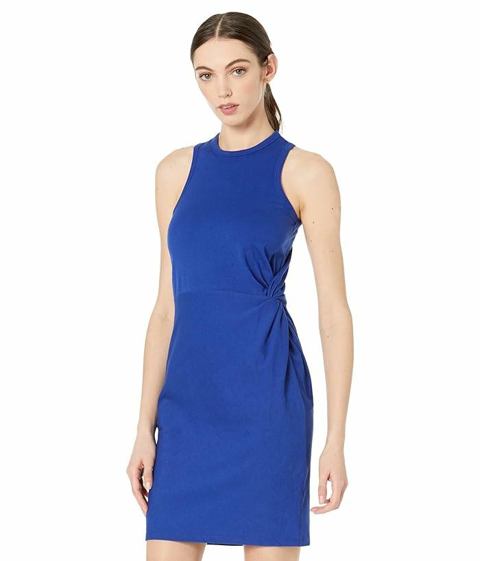 A twist on the side adds flair to this simple body-con silhouette knit from soft cotton for a versatile dress that can easily be styled up or down. 36 1/2" length (size 1) Hidden side-zip closure Unlined Jewel neck Sleeveless 100% cotton Machine wash, dry flat Made in Turkey