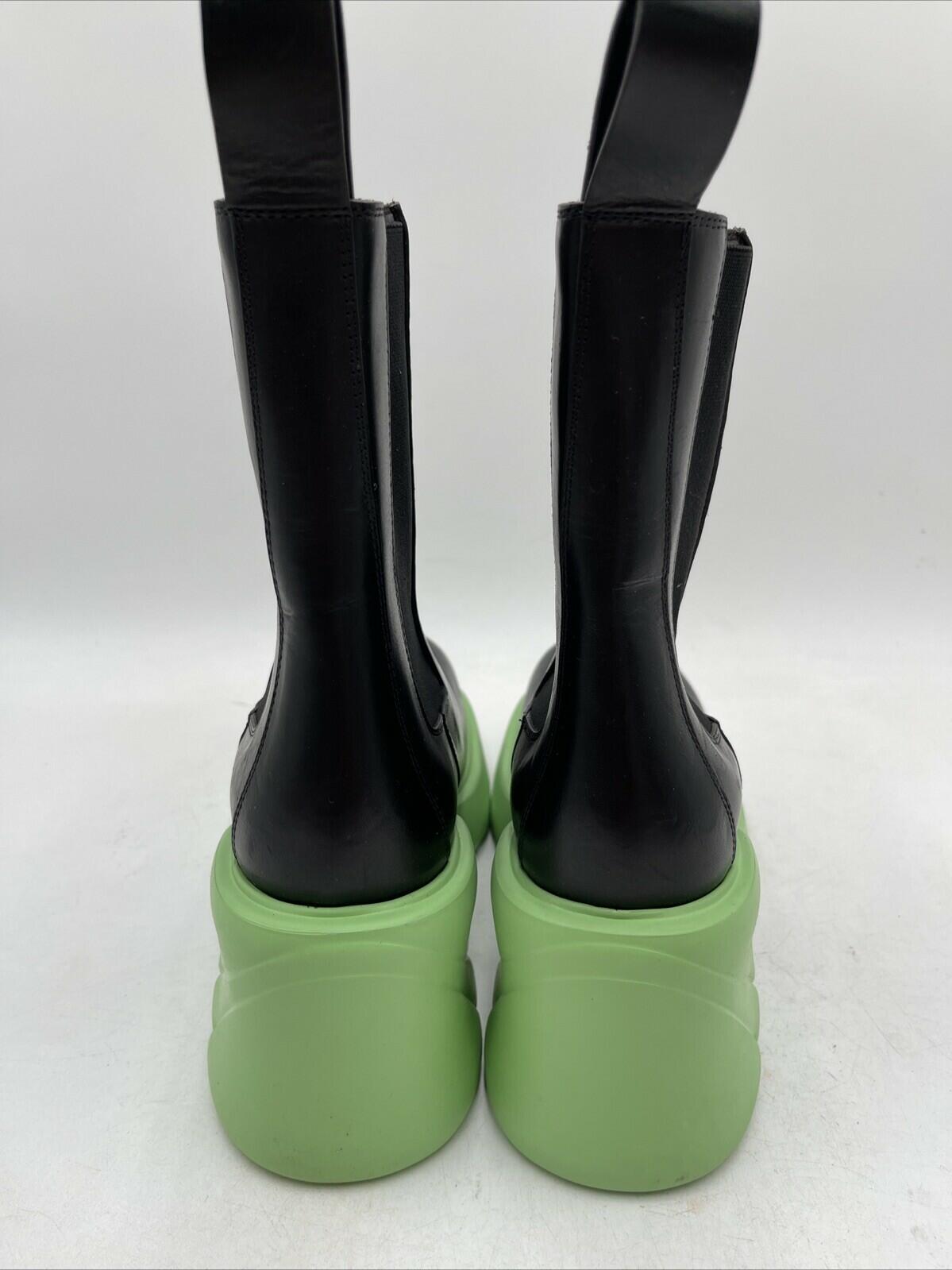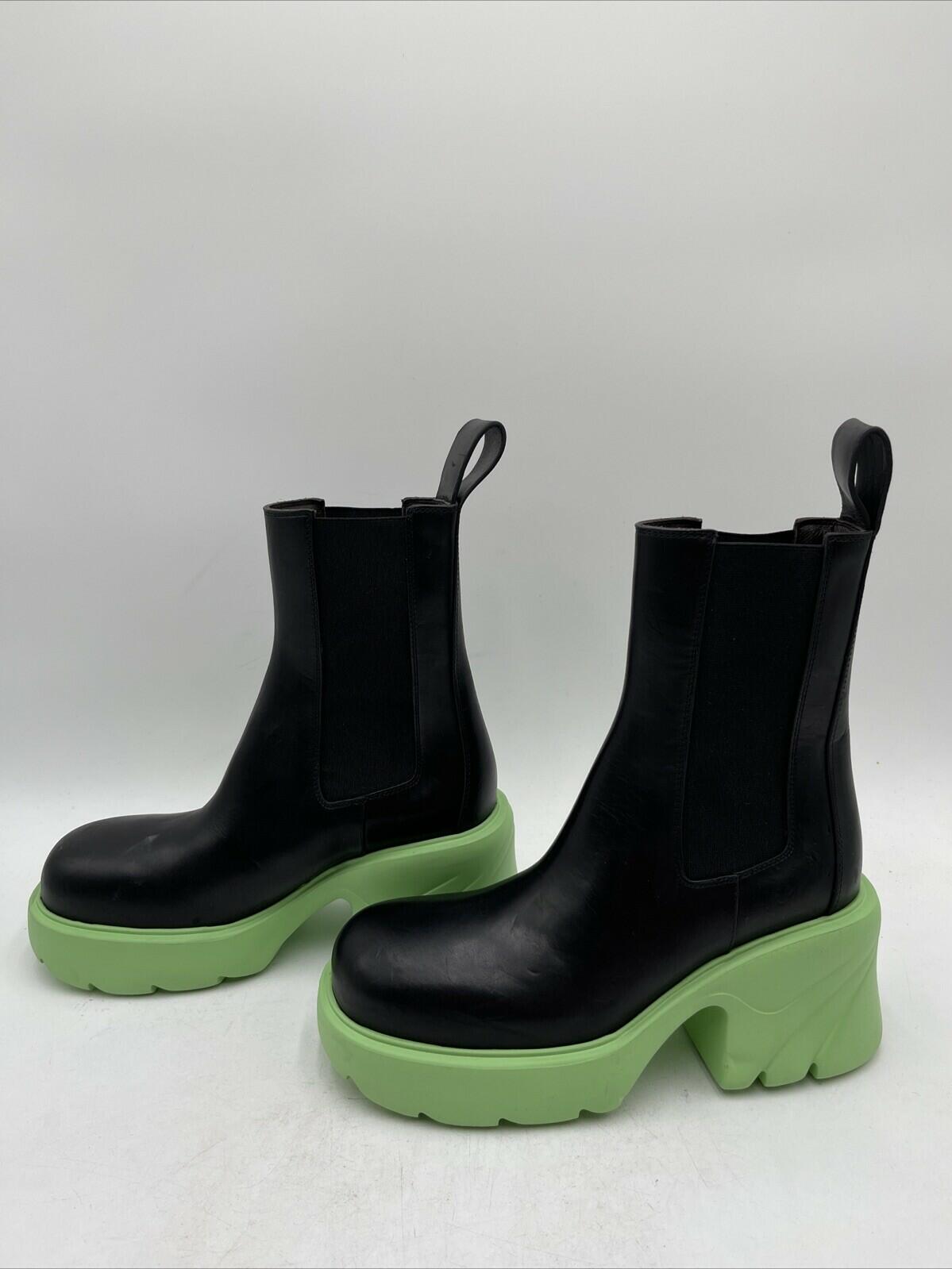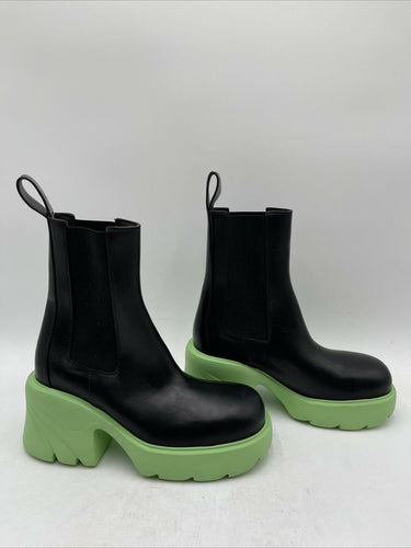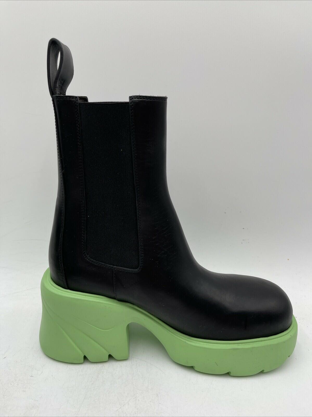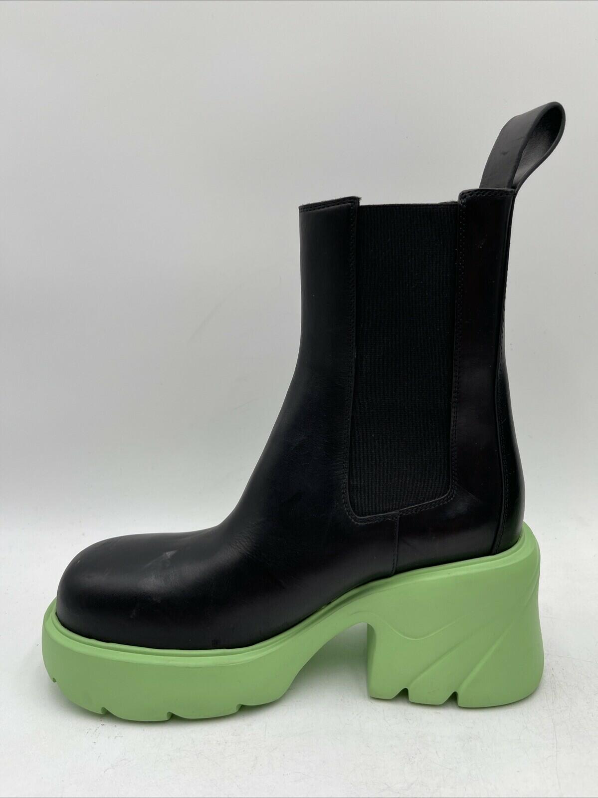 BOTTEGA VENETA Flash Black/Green Leather Chelsea Boots SIZE 37 - Very Good