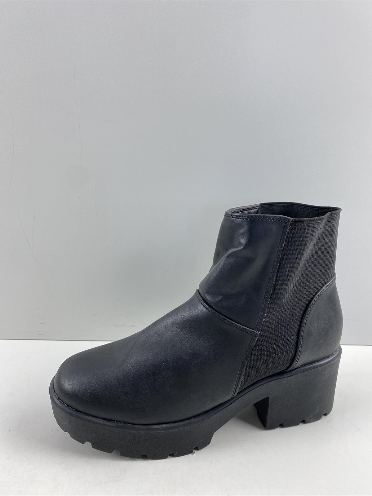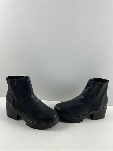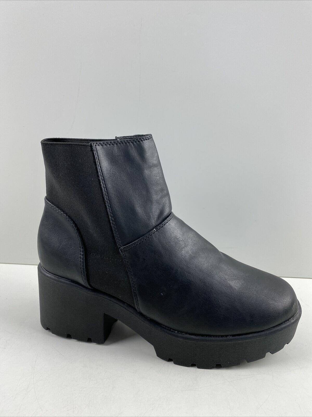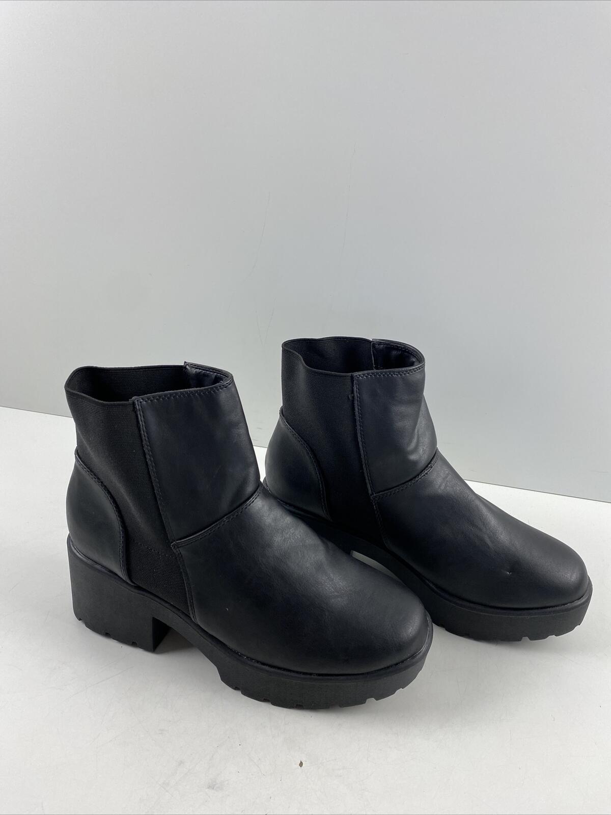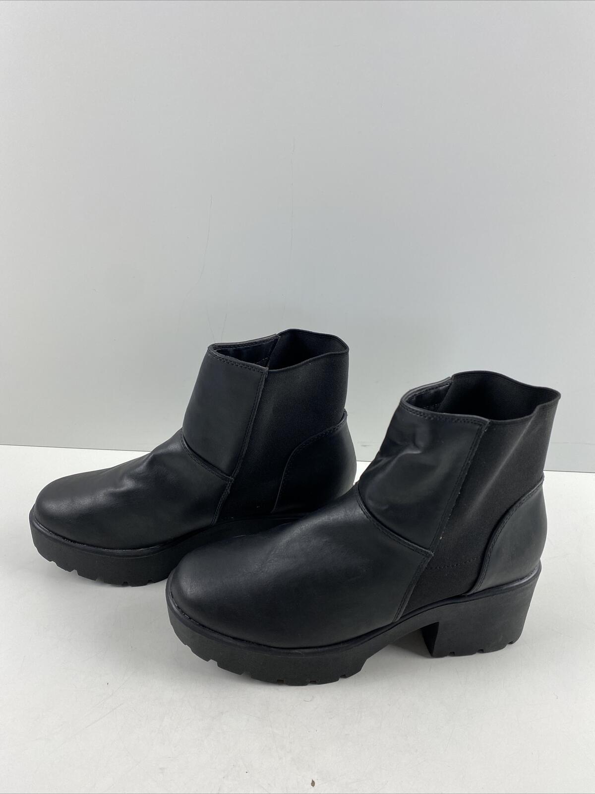 Call It Spring Black Faux Leather Round Toe Pull On Platform Ankle Boot Size 8.5