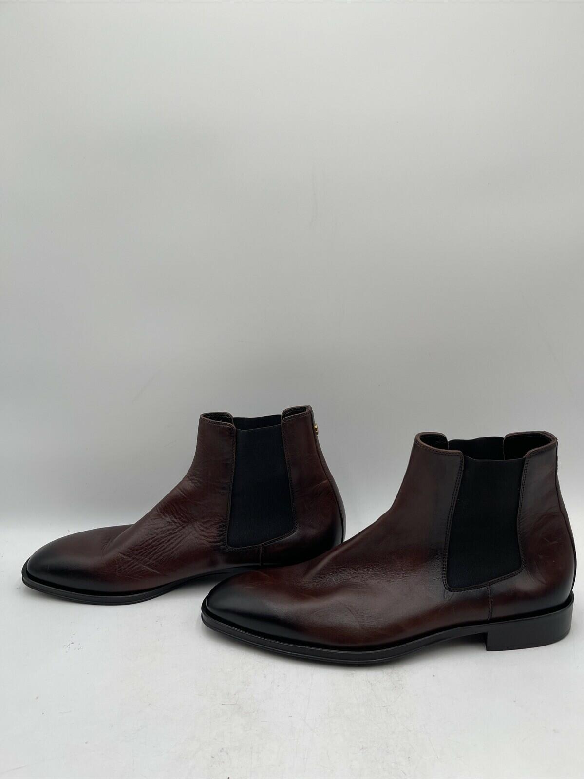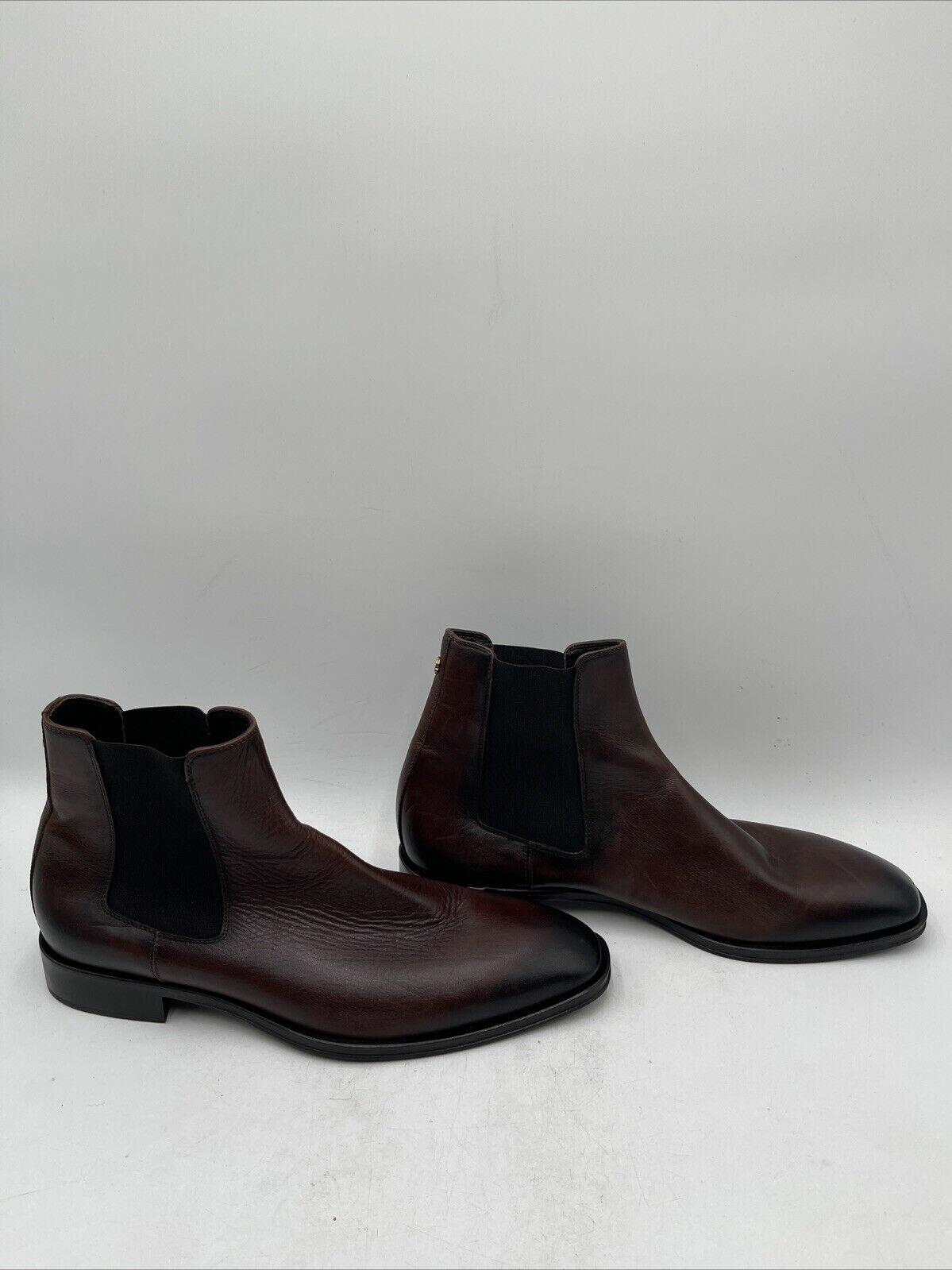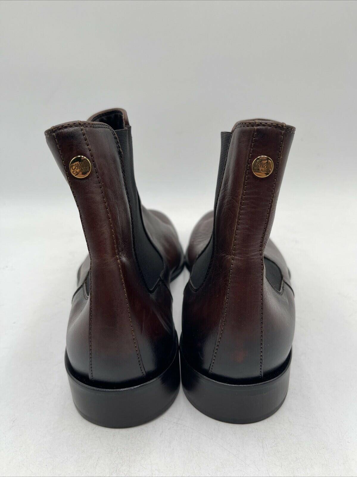 Cavalli Class Brown Leather Round Toe Block Heel Pull On Chelsea Boots Size 43.5 - Very Good