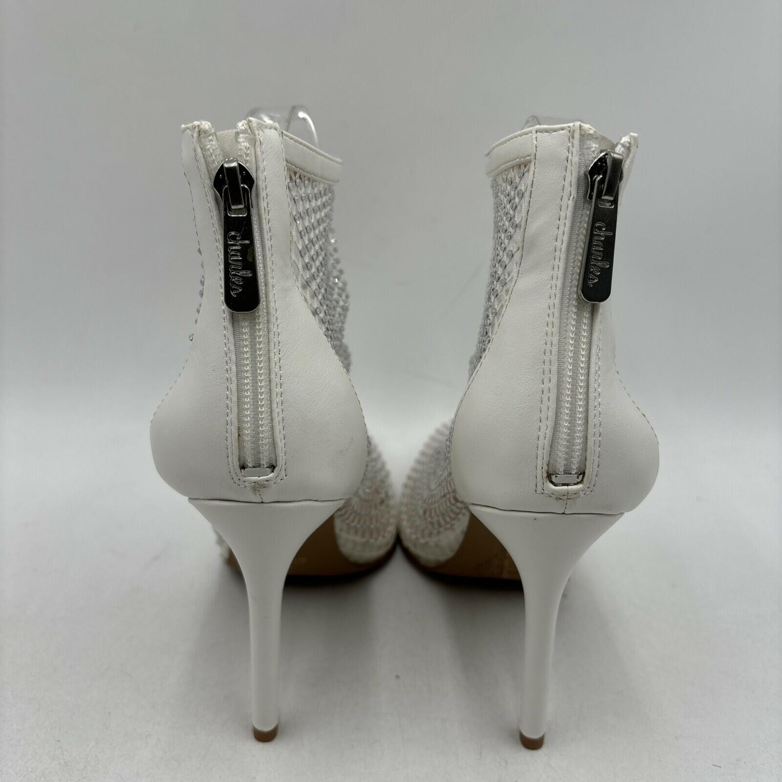 Charles By Charles David Pursue Rhinestone Mesh High Heel Booties Size 7.5M - Very Good