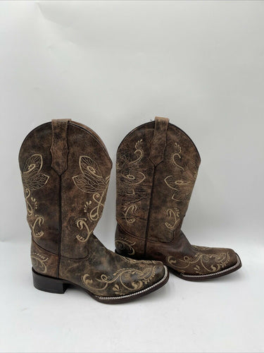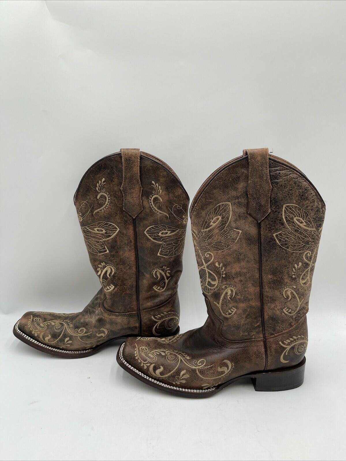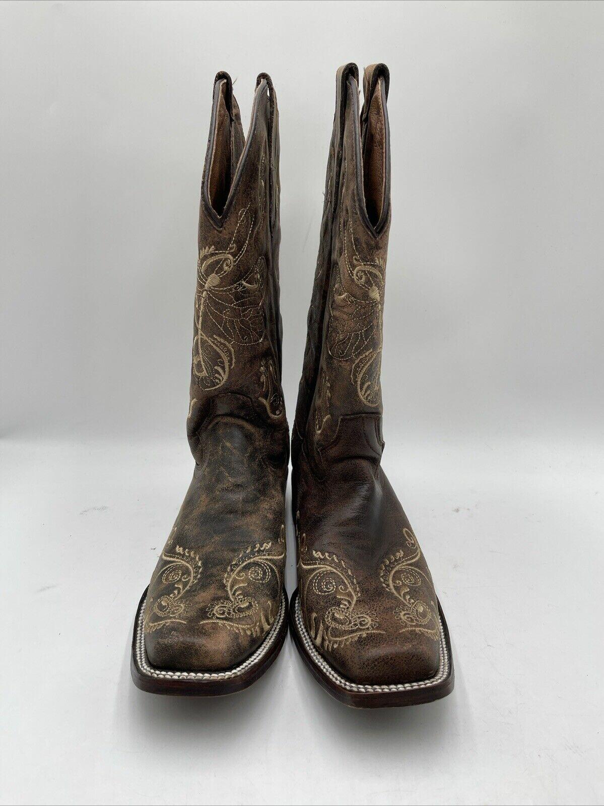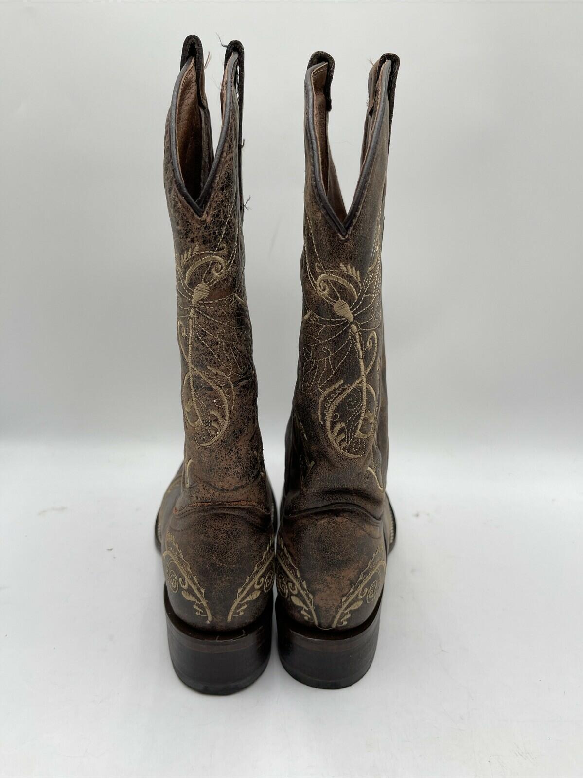 Circle G Women's Dragonfly Square Toe Boots Brown Leather Size 10M - Very Good