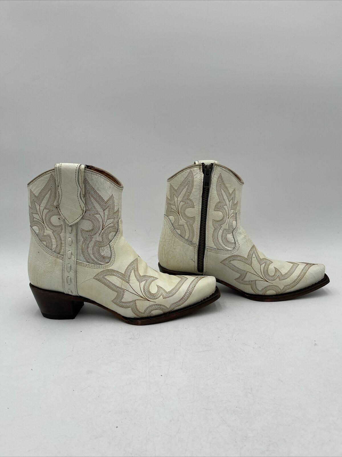 Circle G Women's Pearl Embroidered Ankle Bootie White Size 6