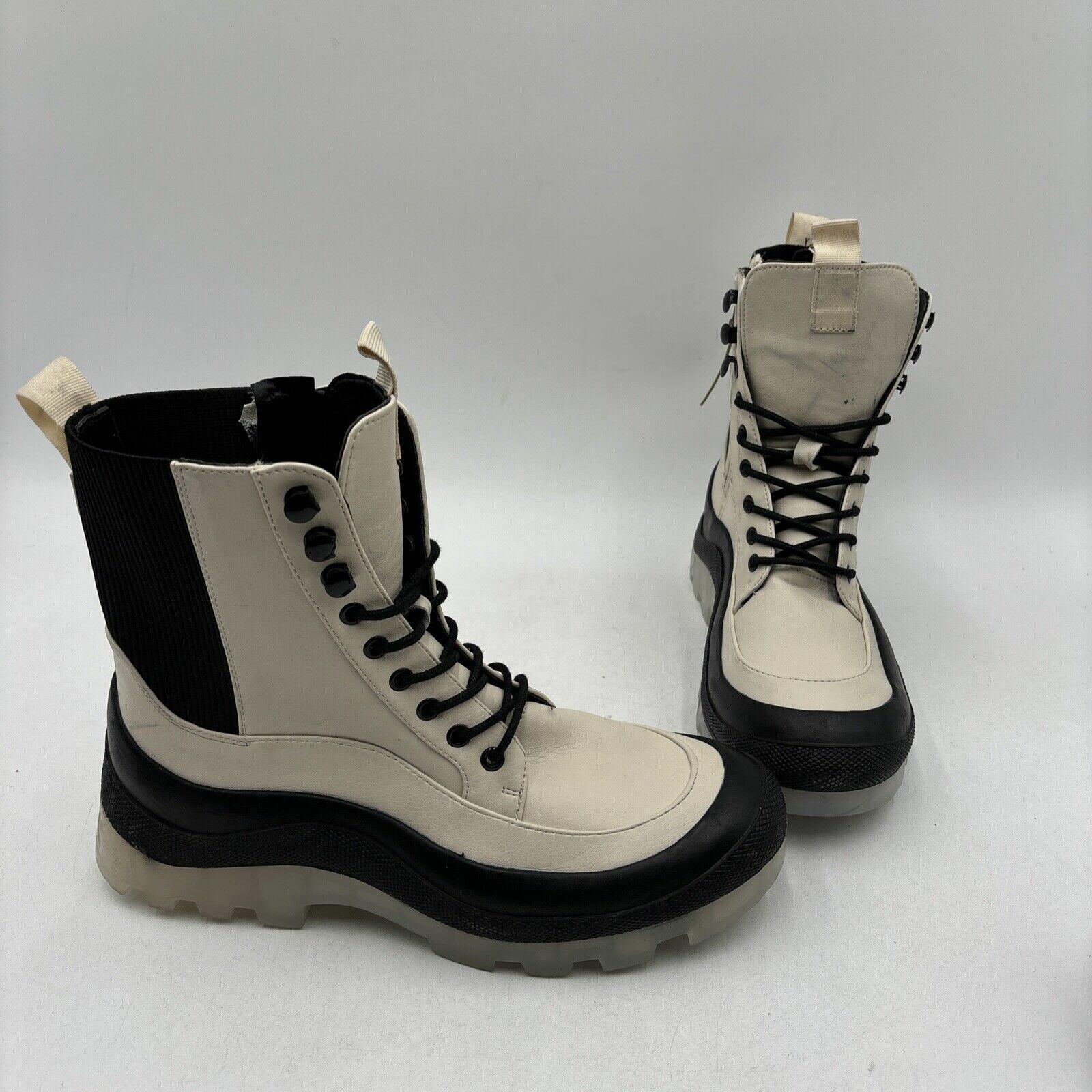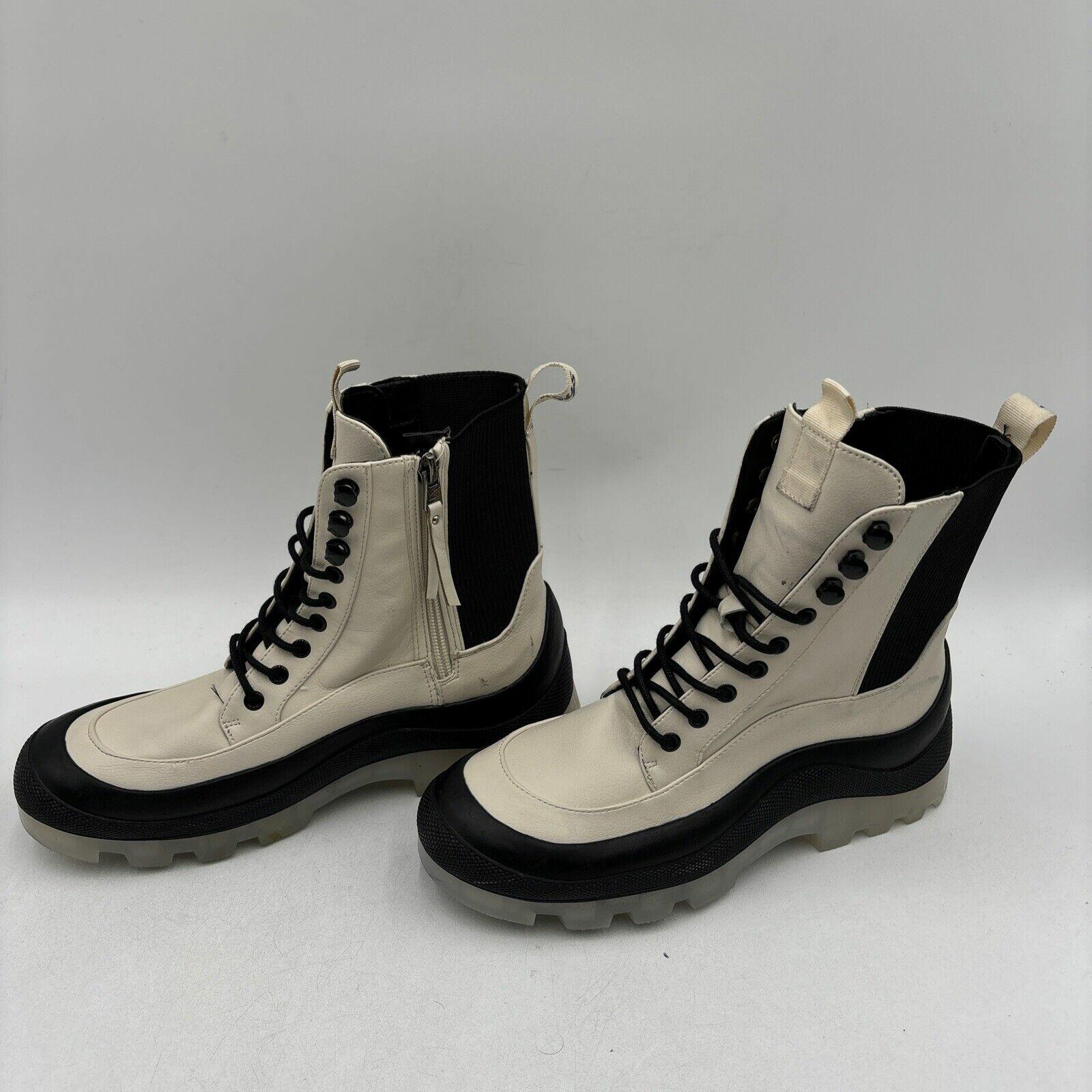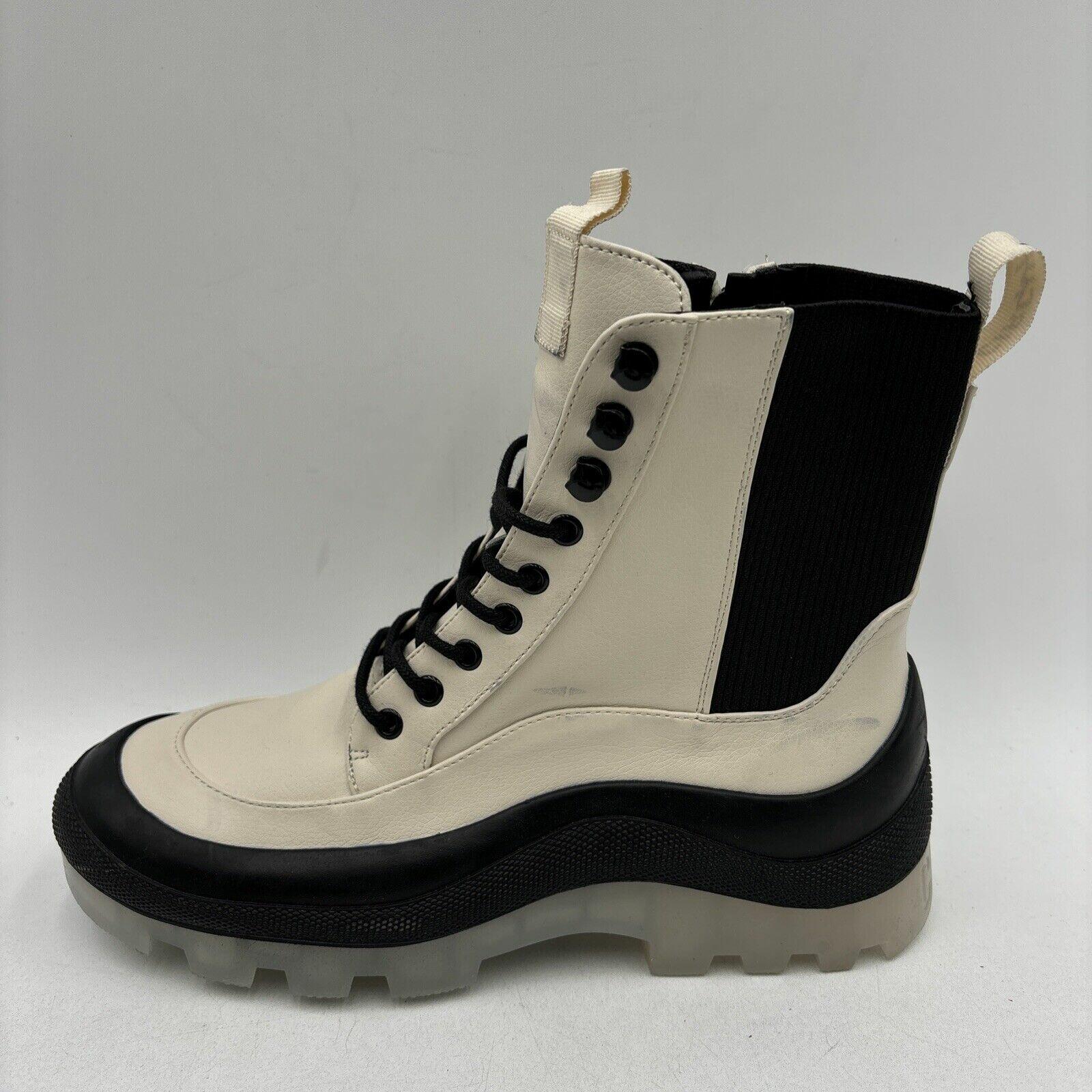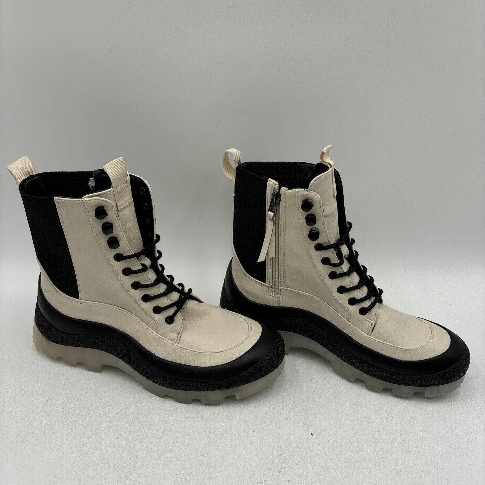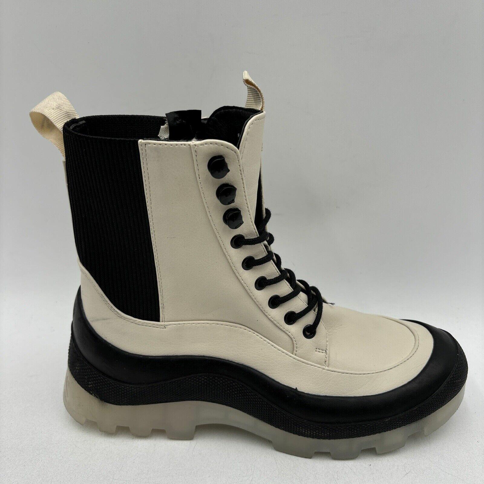 Circus by Sam Edelman BRADLEY White/Black Round Toe Lace Up Lug Sole Booties, 7M - Very Good - Ufashion