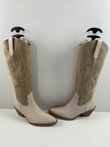 Coconuts by Matisse TELLURIDE Beige Suede/Faux Leather Snip Toe Western Boots Womens 6 M