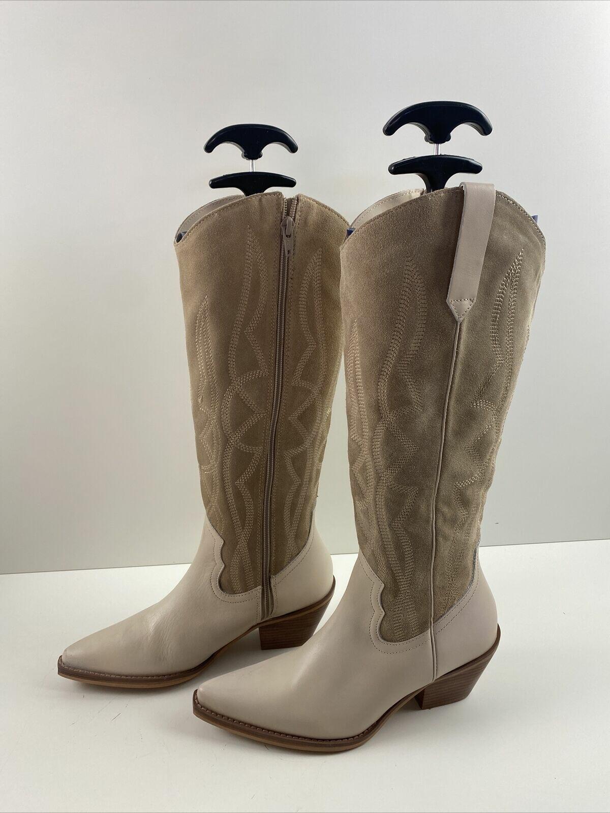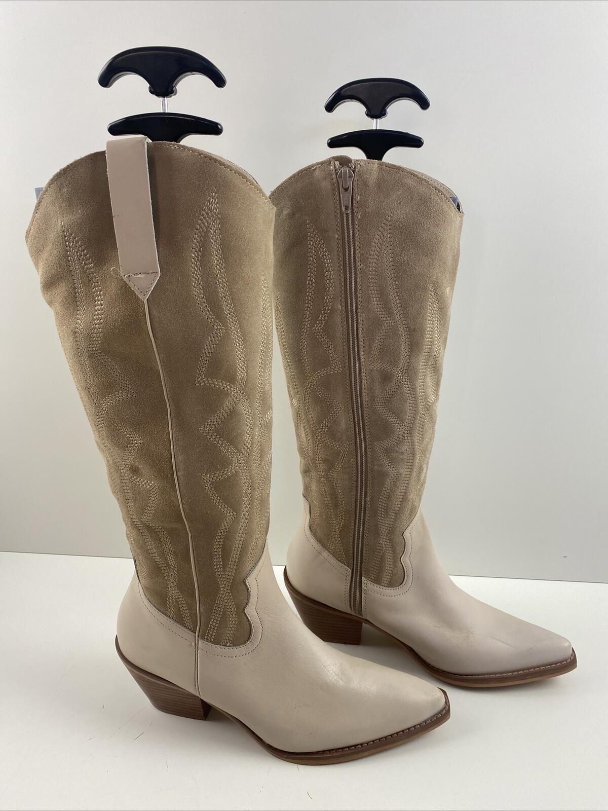 Coconuts by Matisse TELLURIDE Beige Suede/Faux Leather Snip Toe Western Boots 6M - Ufashion