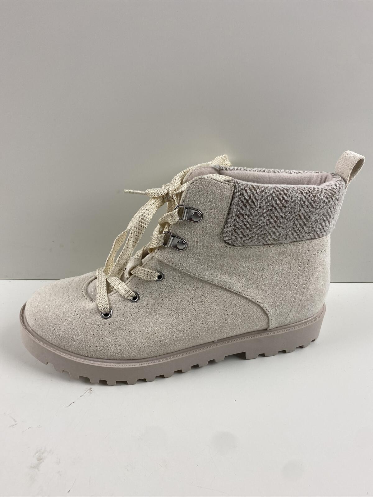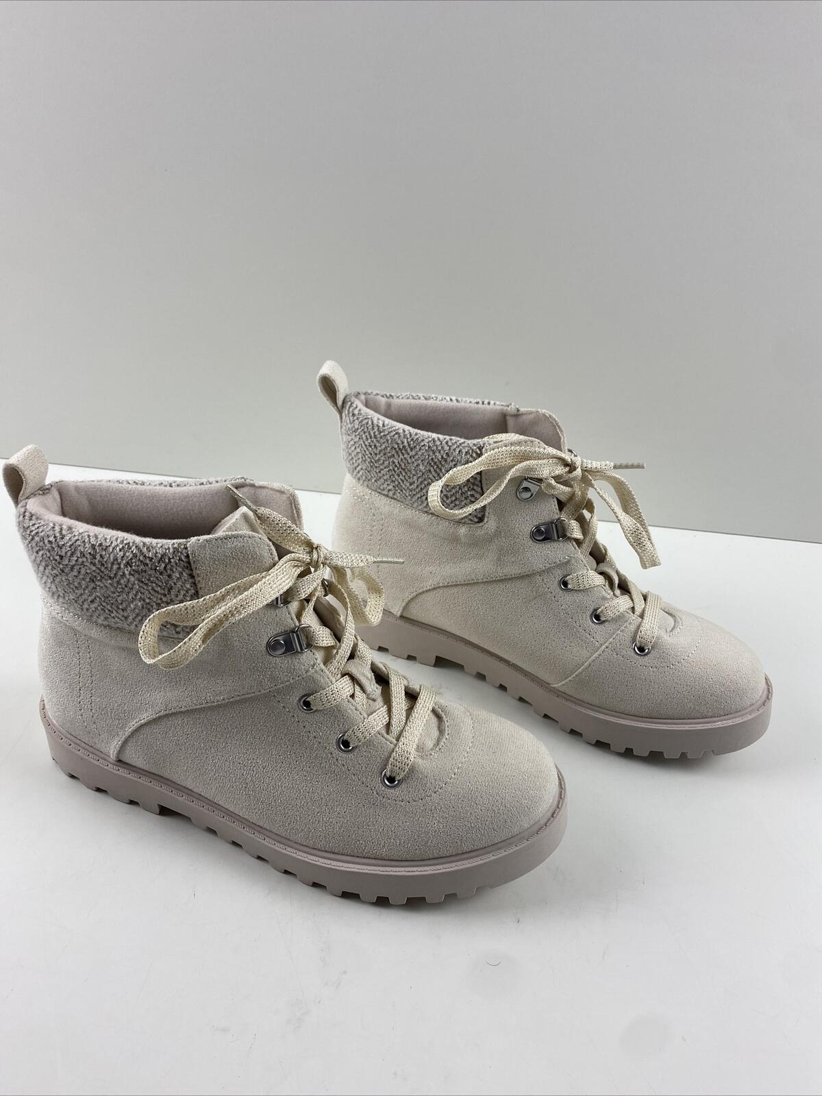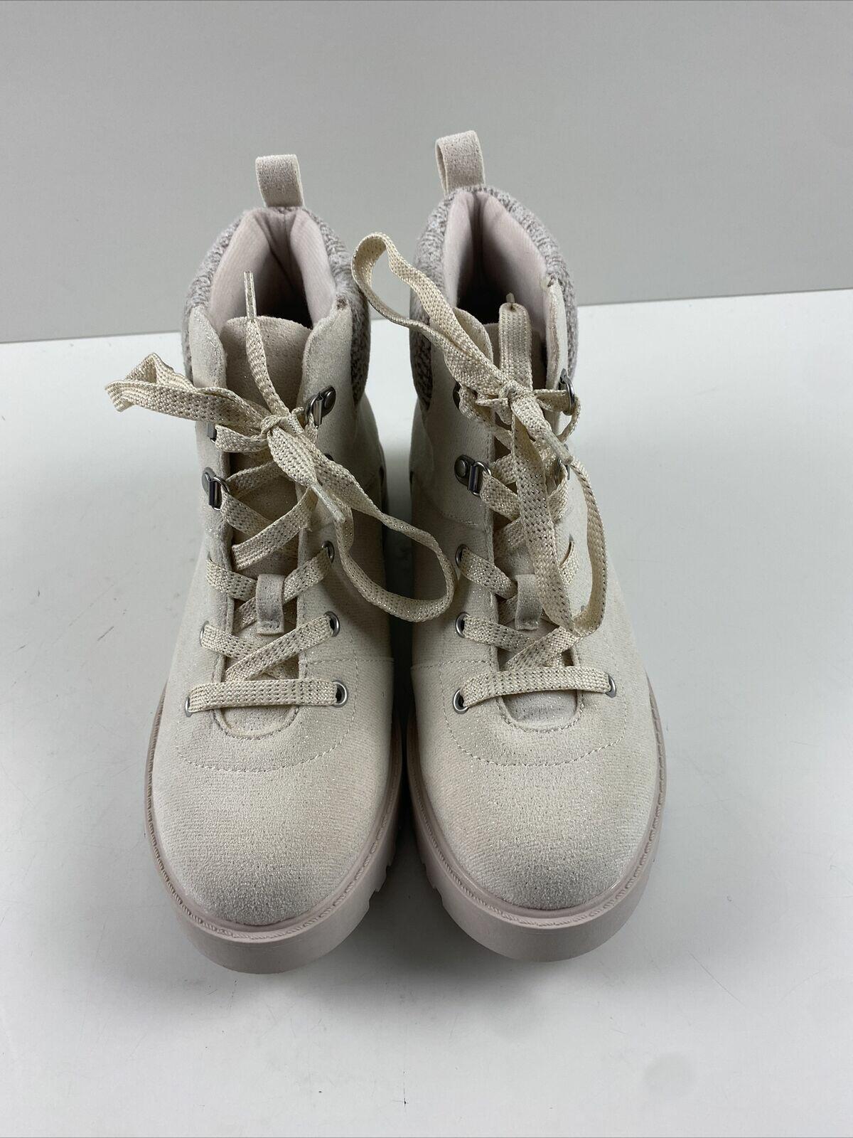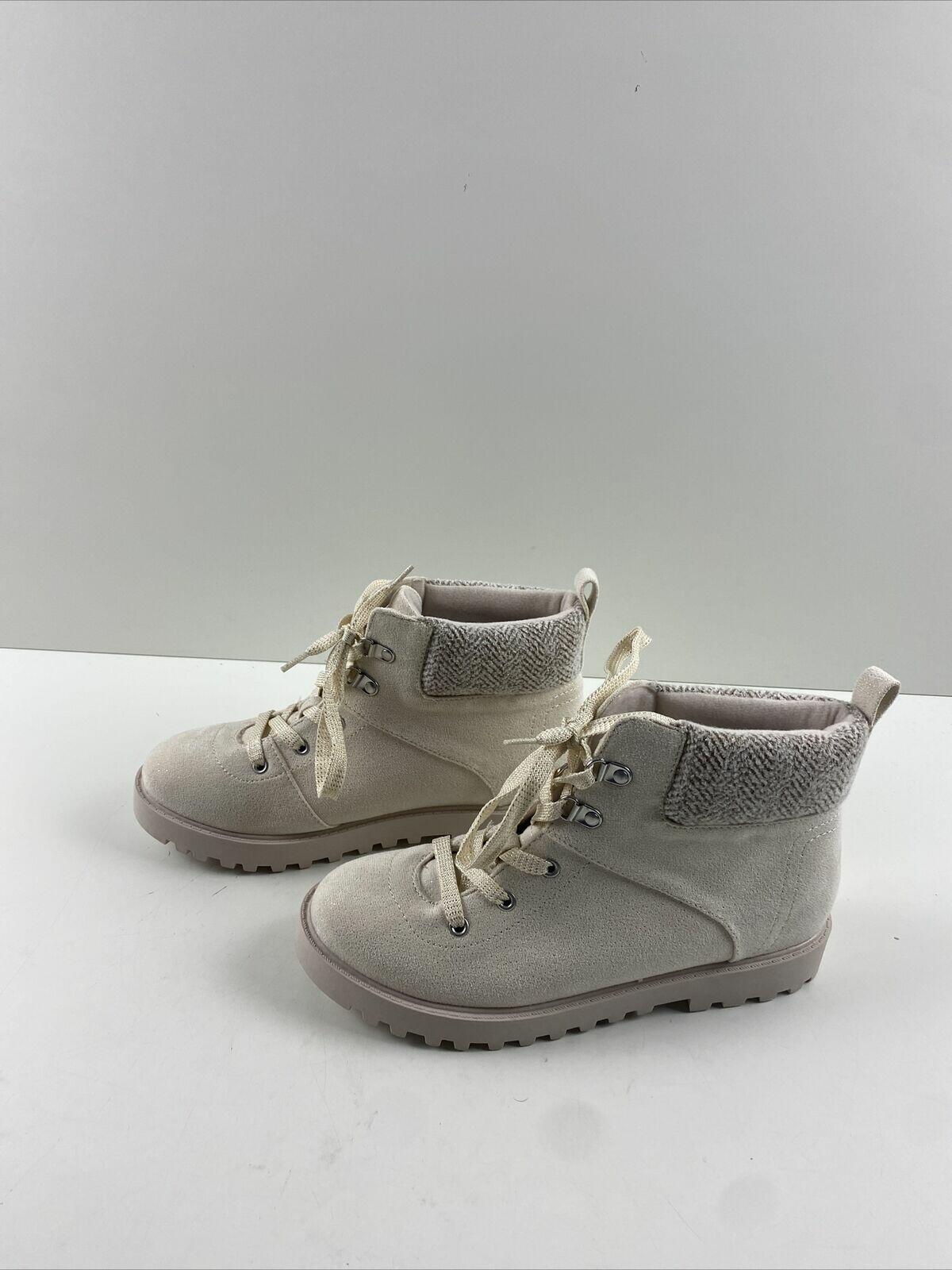 Crown Vintage LEILA Off White Fabric Lace Up Round Toe Ankle Boots Women’s 5 M