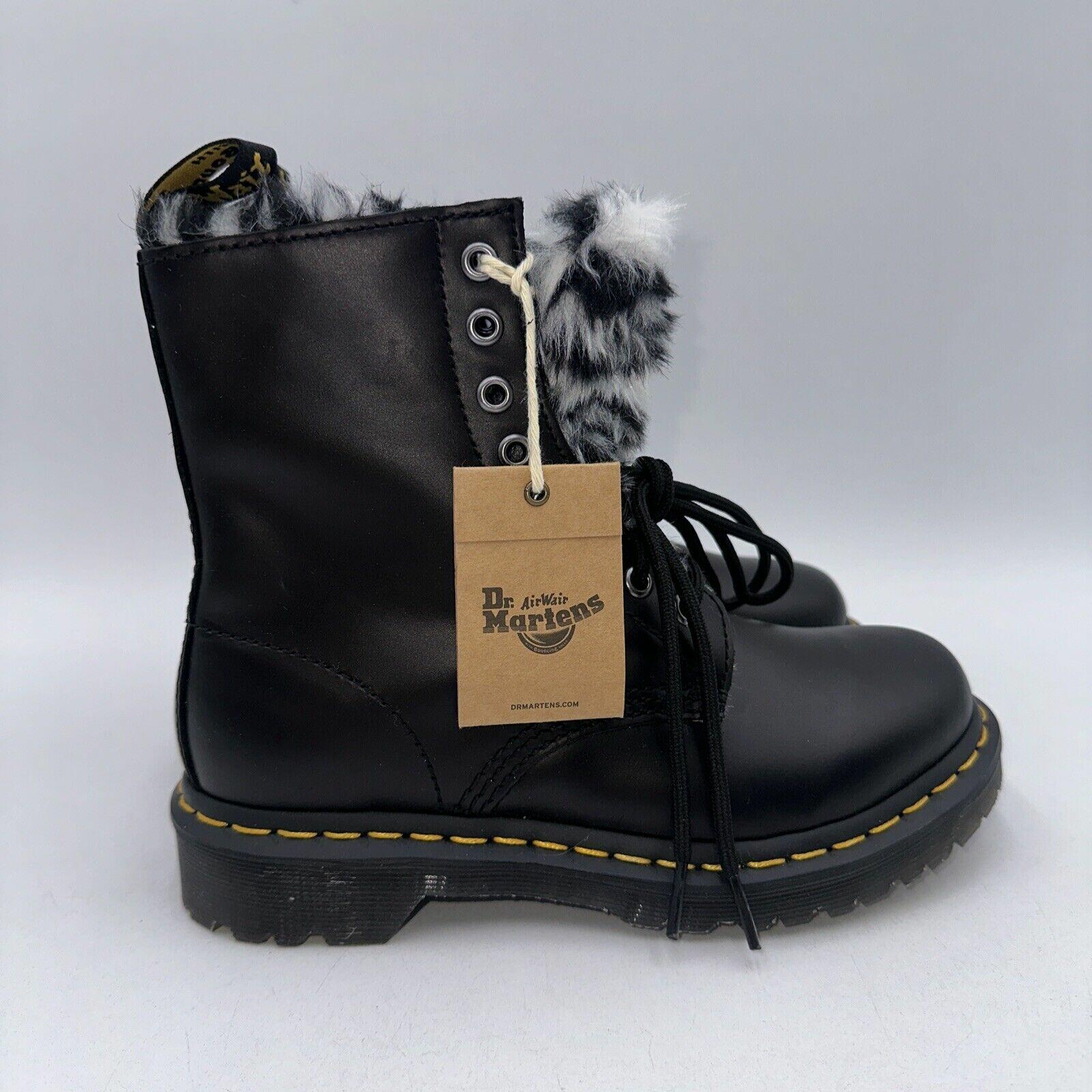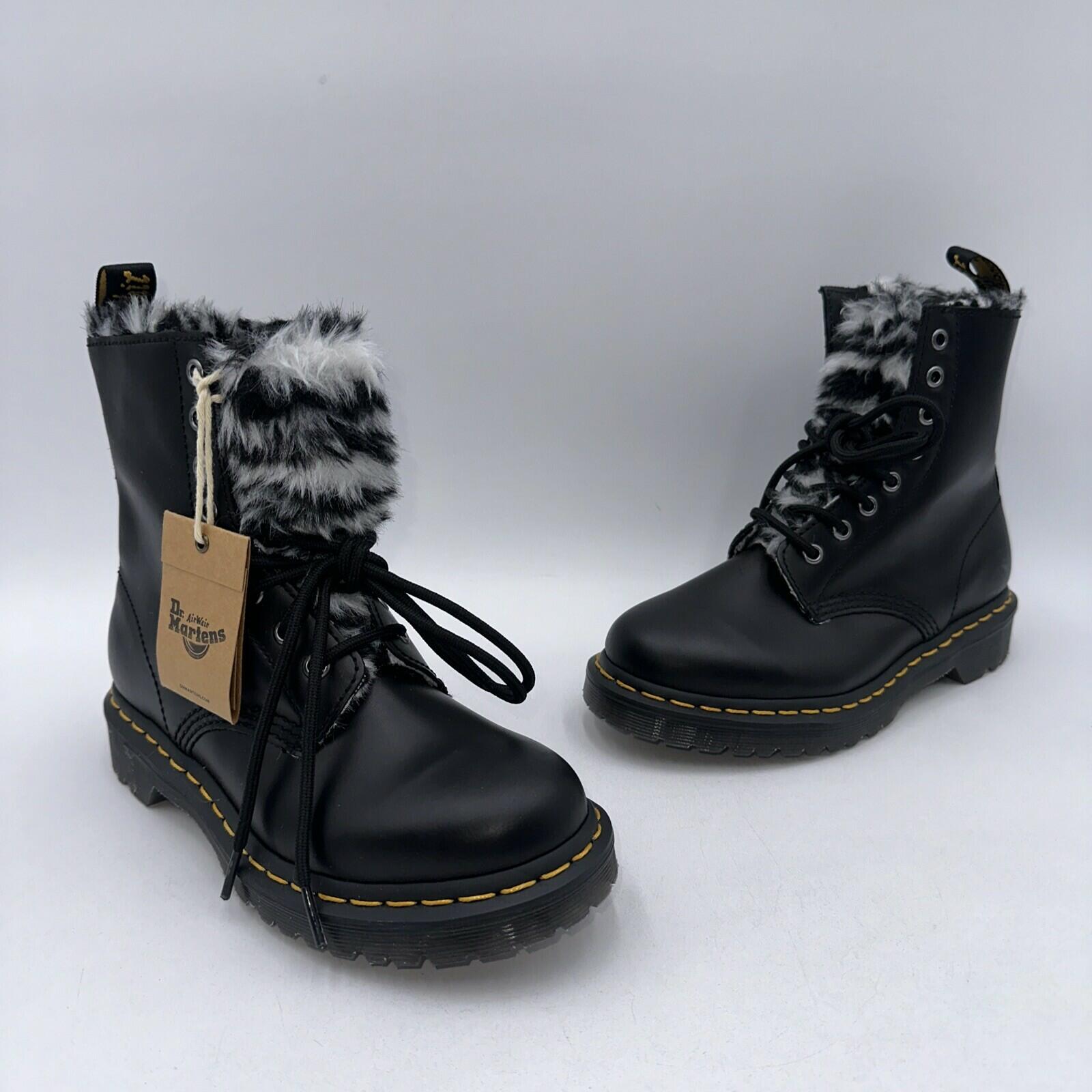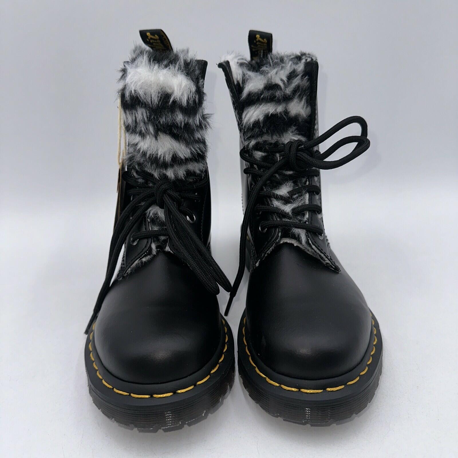 Dr. Martens 1460 Serena Leather Boots (Black / Zebra Faux Fur ) Women’s Size 6