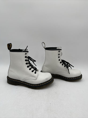 Dr. Martens 1460 W White Smooth Leather Round Toe Lace Up Ankle Boots Women’s 7
