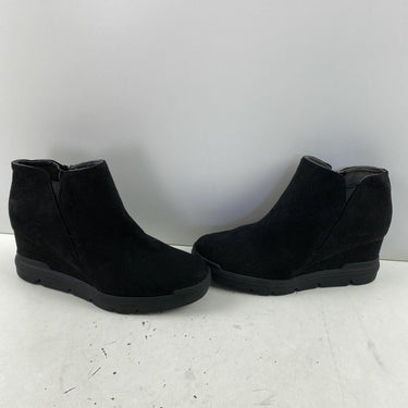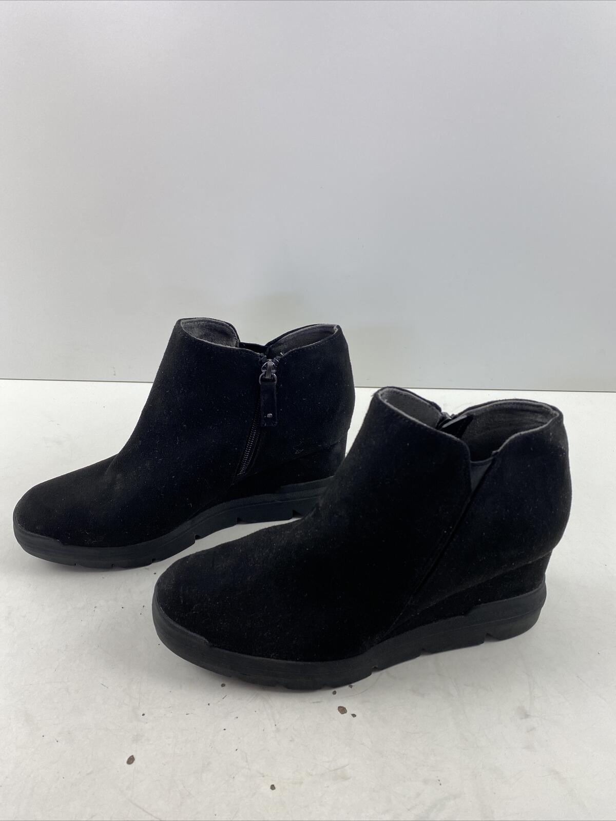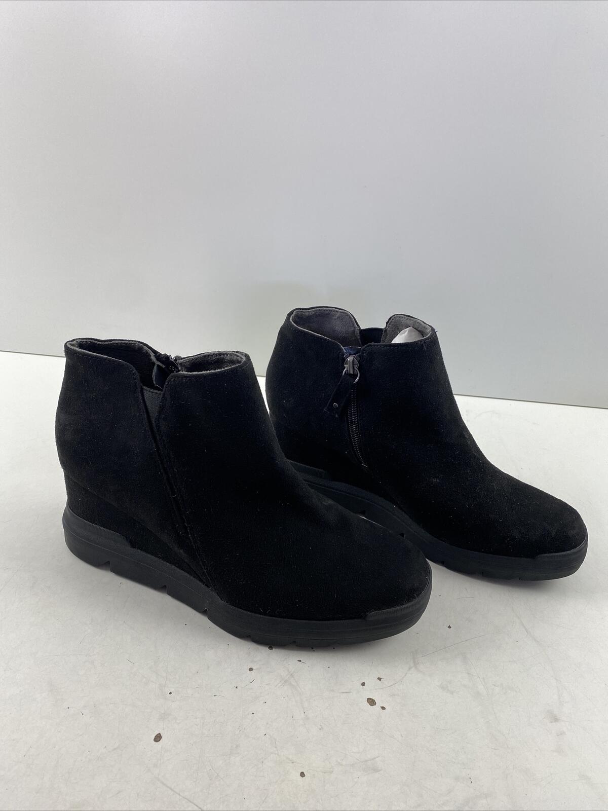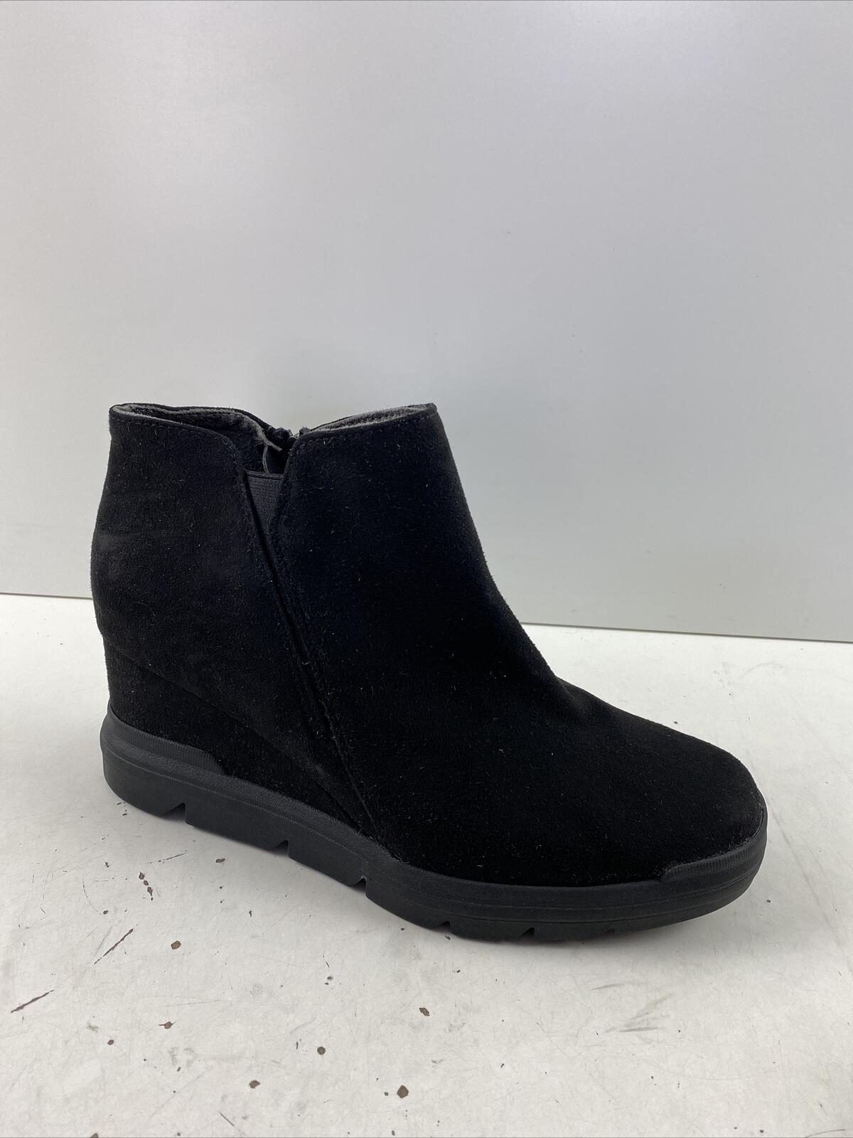 Dr. Scholl’s Shoes Black Fabric Round Toe Side Zip Wedge Ankle Boots Womens 10 M