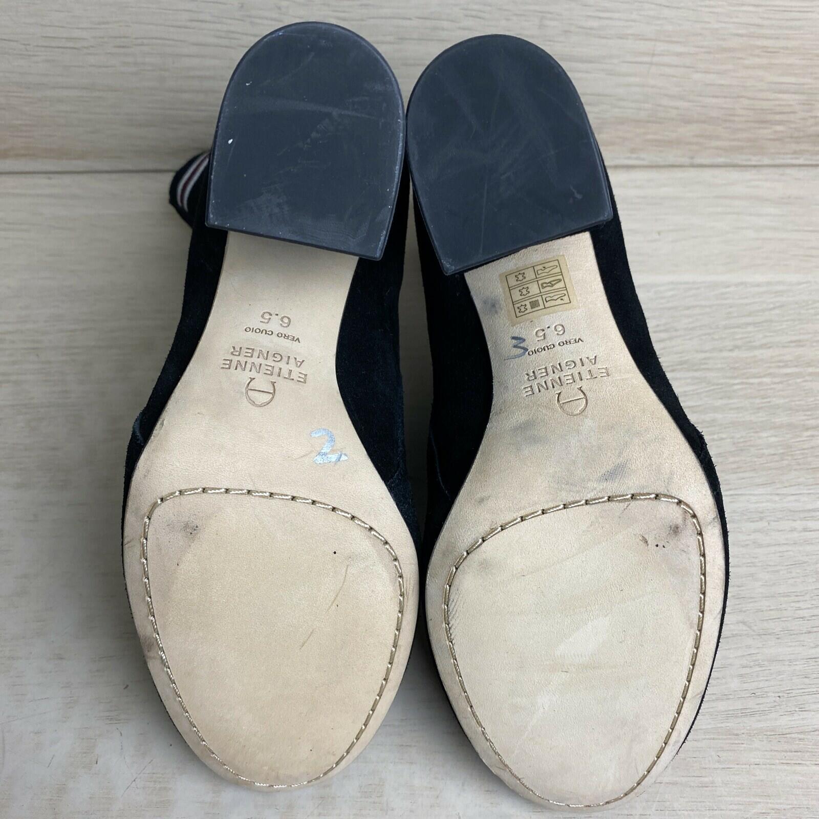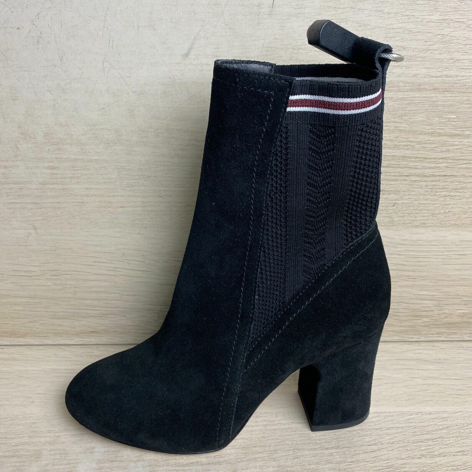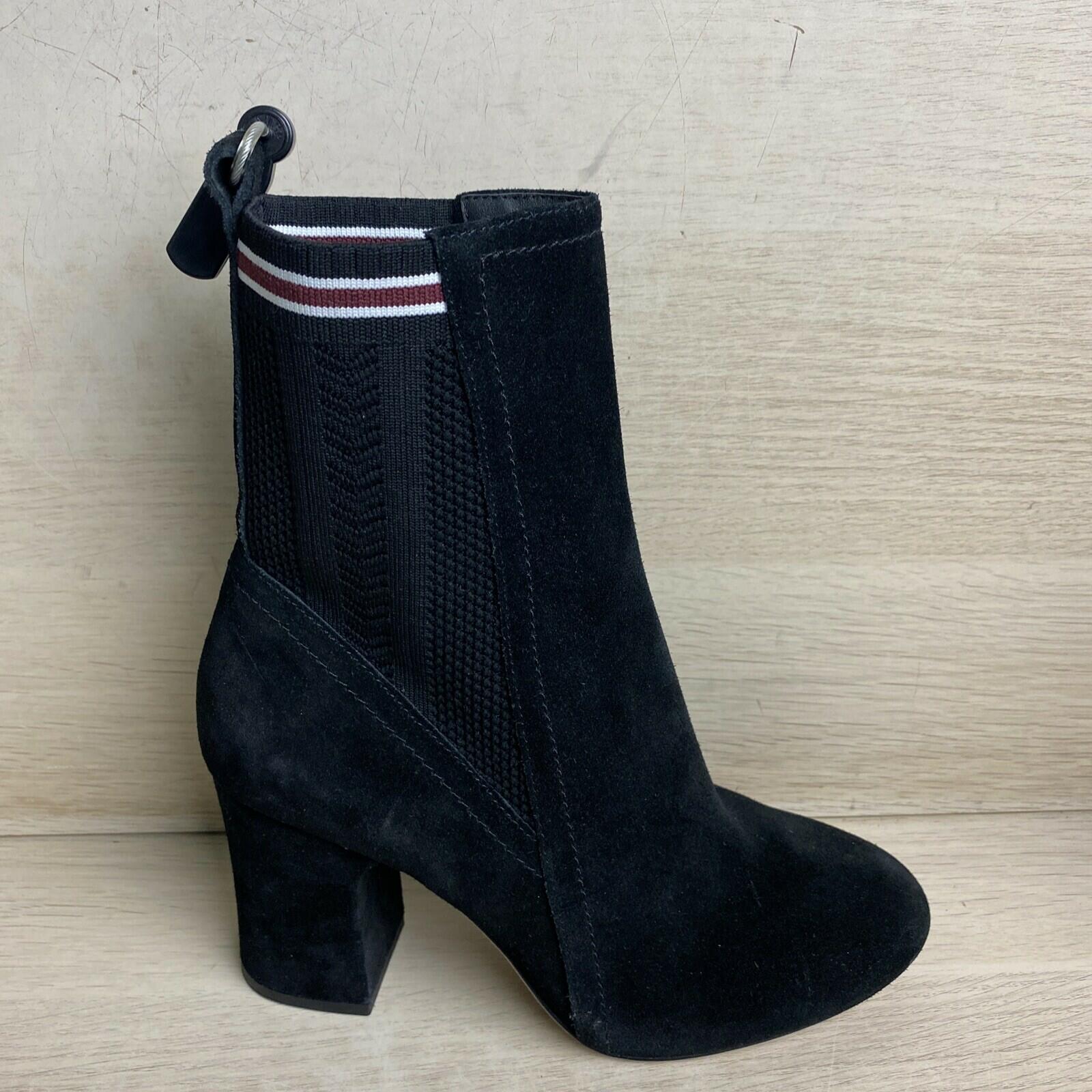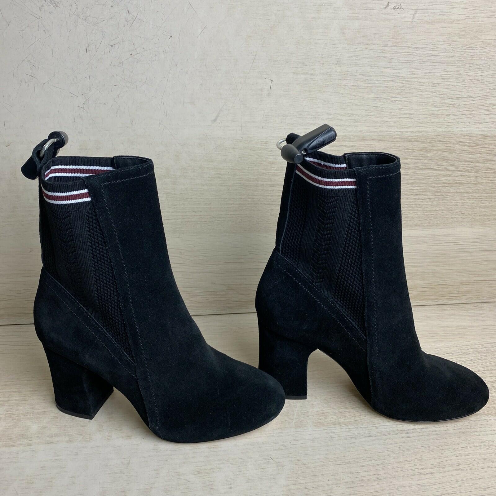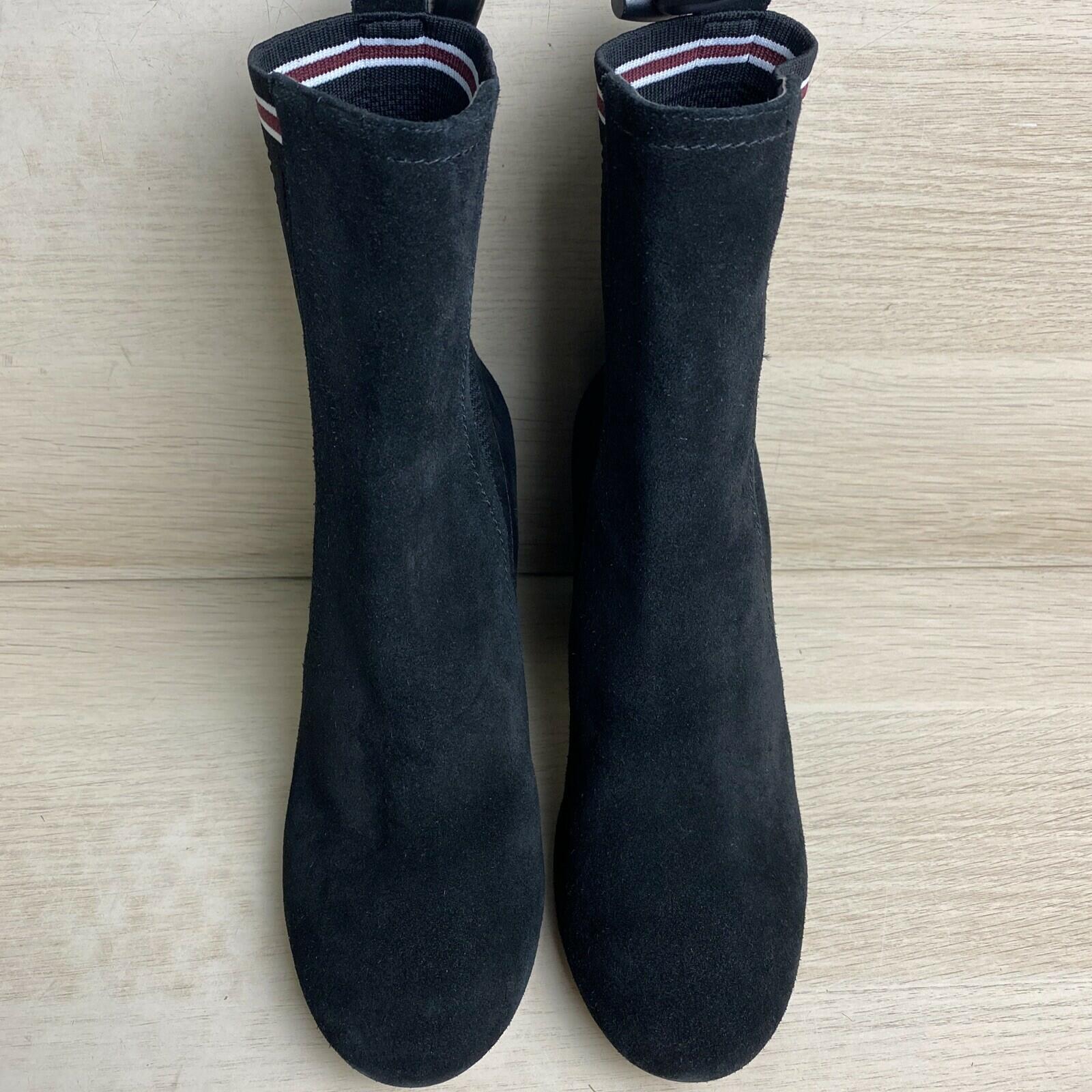 Etienne Aigner “MARELLE” Black Suede/Textile Round Toe Pull On Boots, Size 6.5M