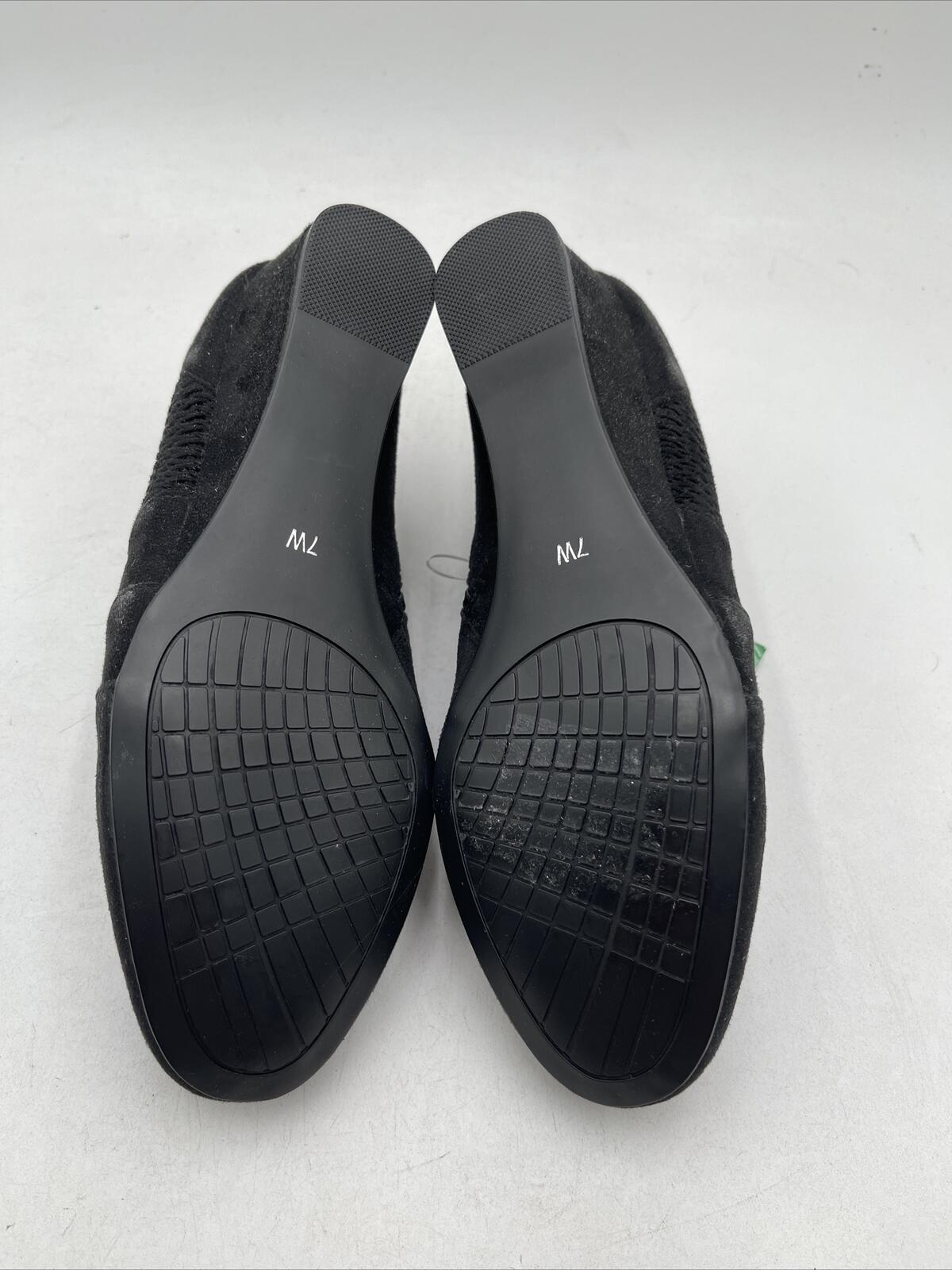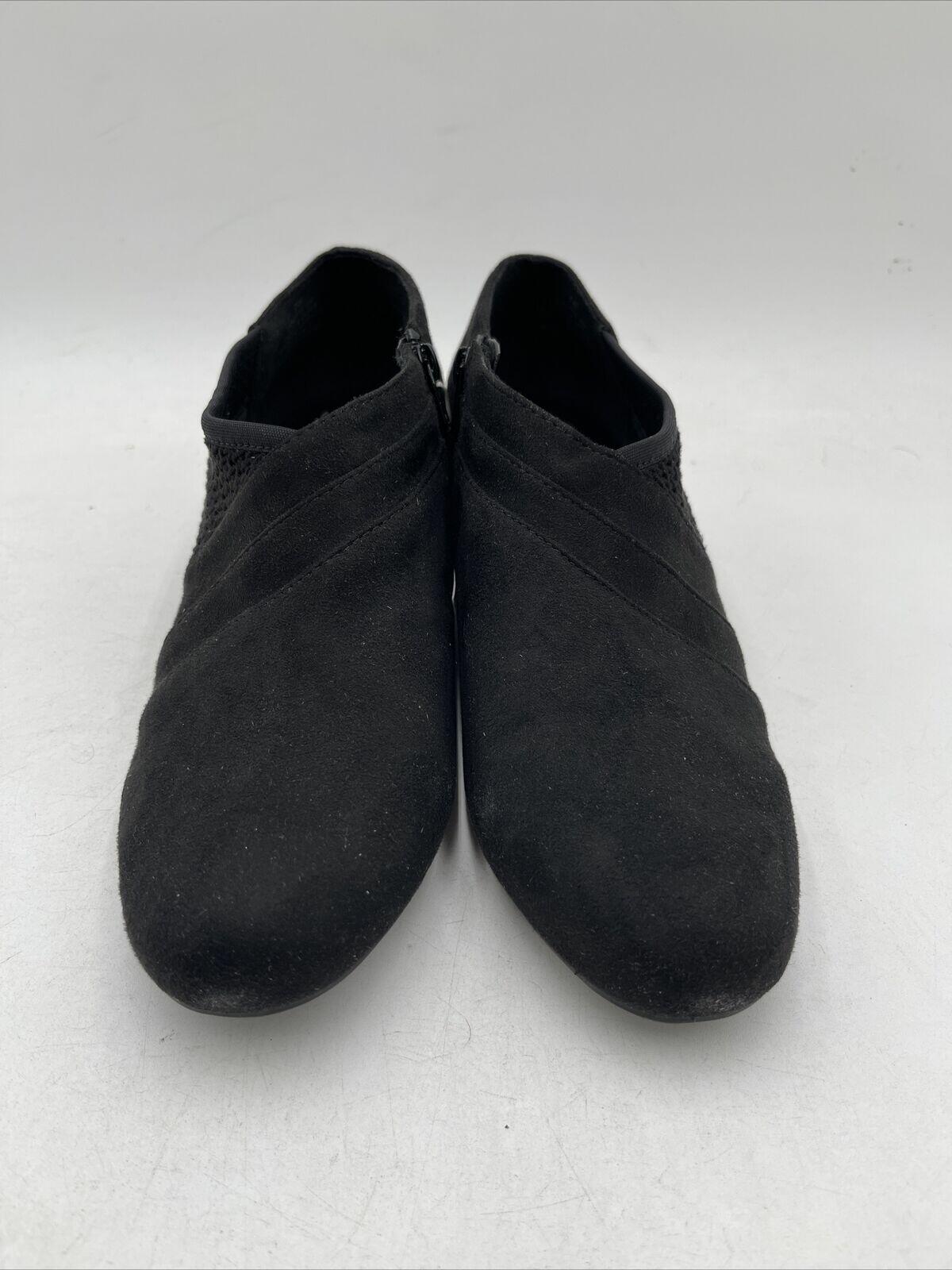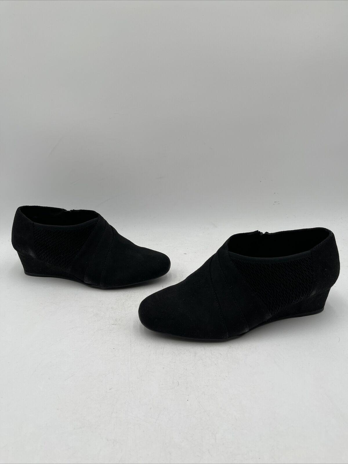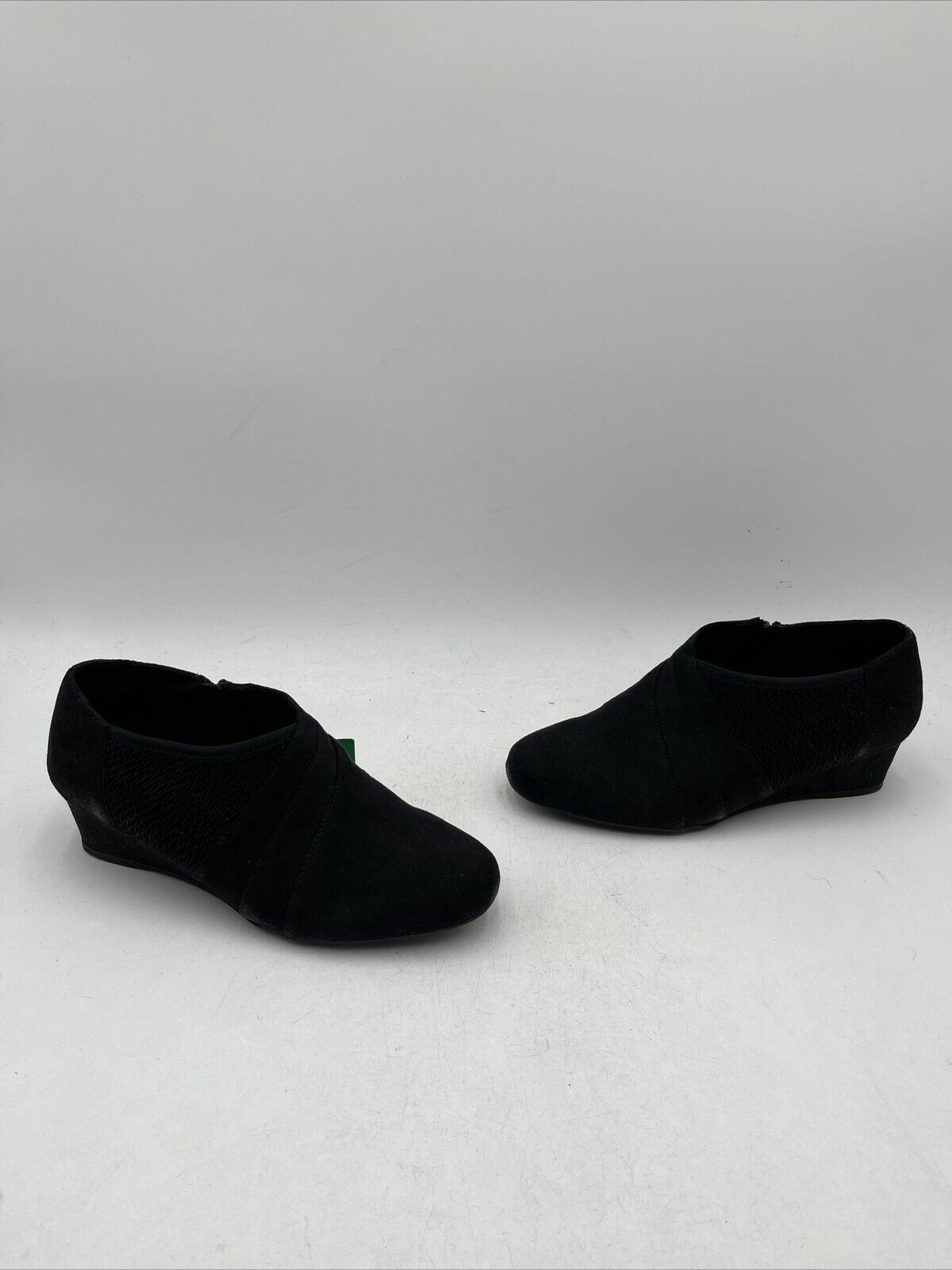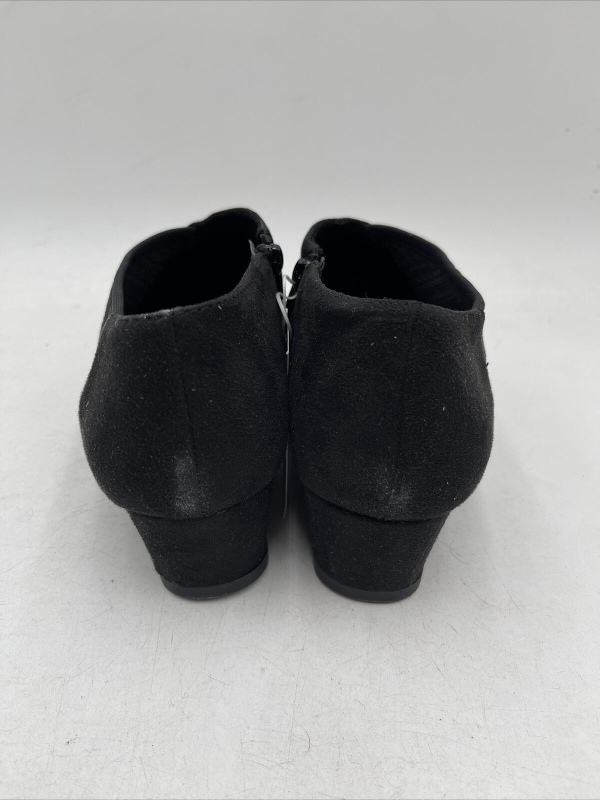 -Bottoms are lightly wornElevate your casual or business look with these Impo Women's Ginger Wedge Shoetie Booties in classic black. With a low wedge heel measuring 1-1.9 inches, these booties provide both style and comfort. The ankle height and round toe shape make them versatile for any occasion, whether it's a day out with friends or a business meeting.