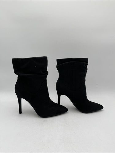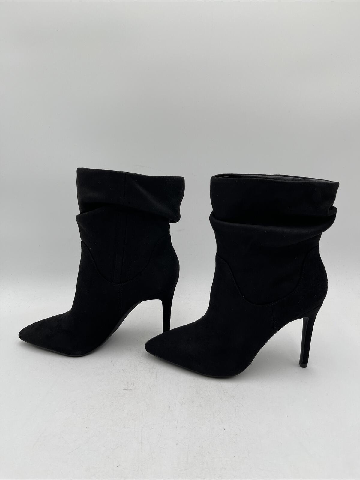 Elevate your style with these chic JESSICA SIMPSON Women's Hartzell Pointed-Toe Slouch Booties. Crafted from soft suede, these ankle boots feature a stylish pointed toe and a high stiletto heel, making them the perfect choice for any party or cocktail event. The black color adds a touch of sophistication to any outfit, while the slouch design adds a trendy touch. Available in US size 5.5 and EU size 36, these booties are sure to become a staple in your shoe collection.D2