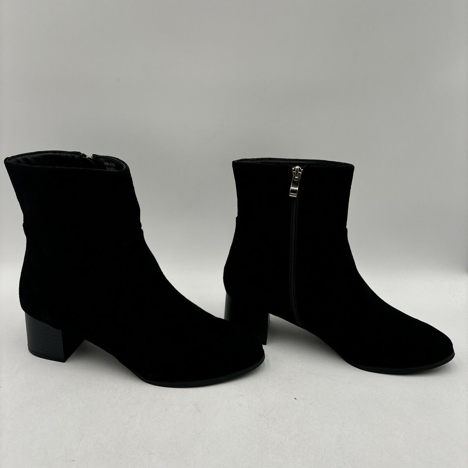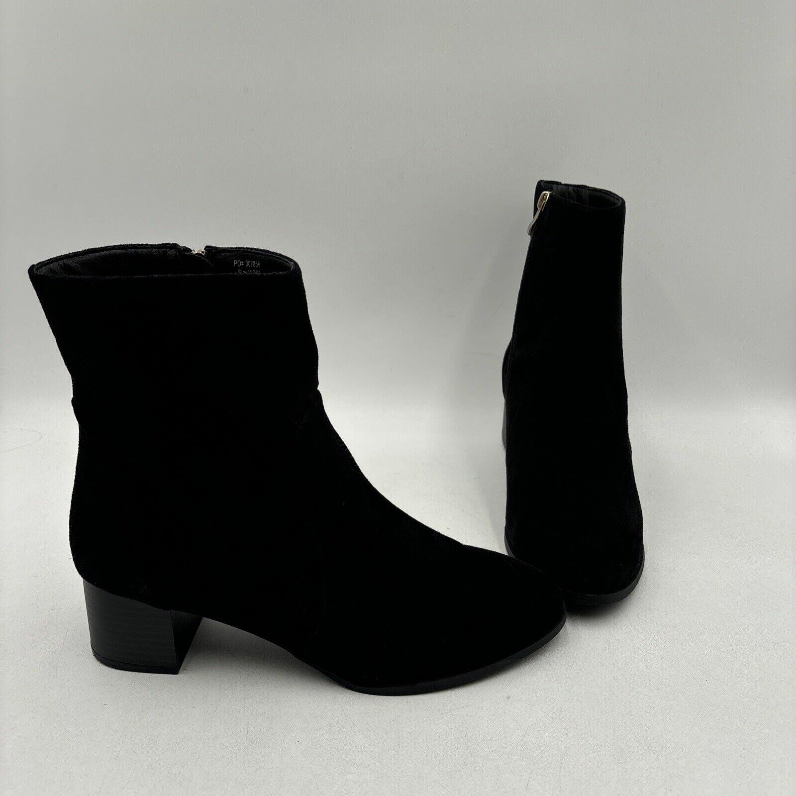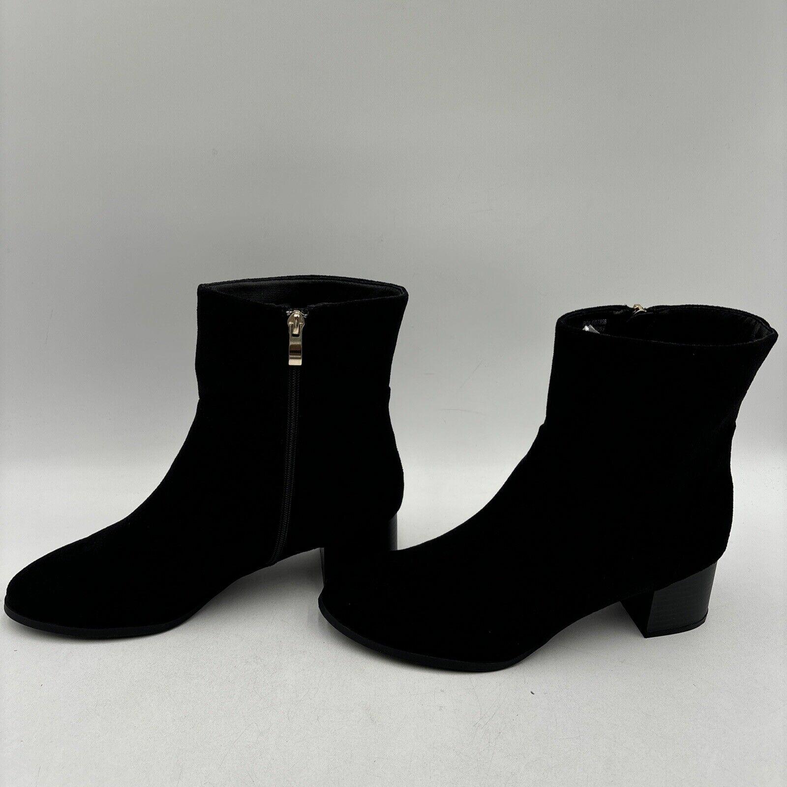 Journee Collection HAYVEN Black Fabric Almond Toe Side Zip Booties, Size 9.5WD - Very Good