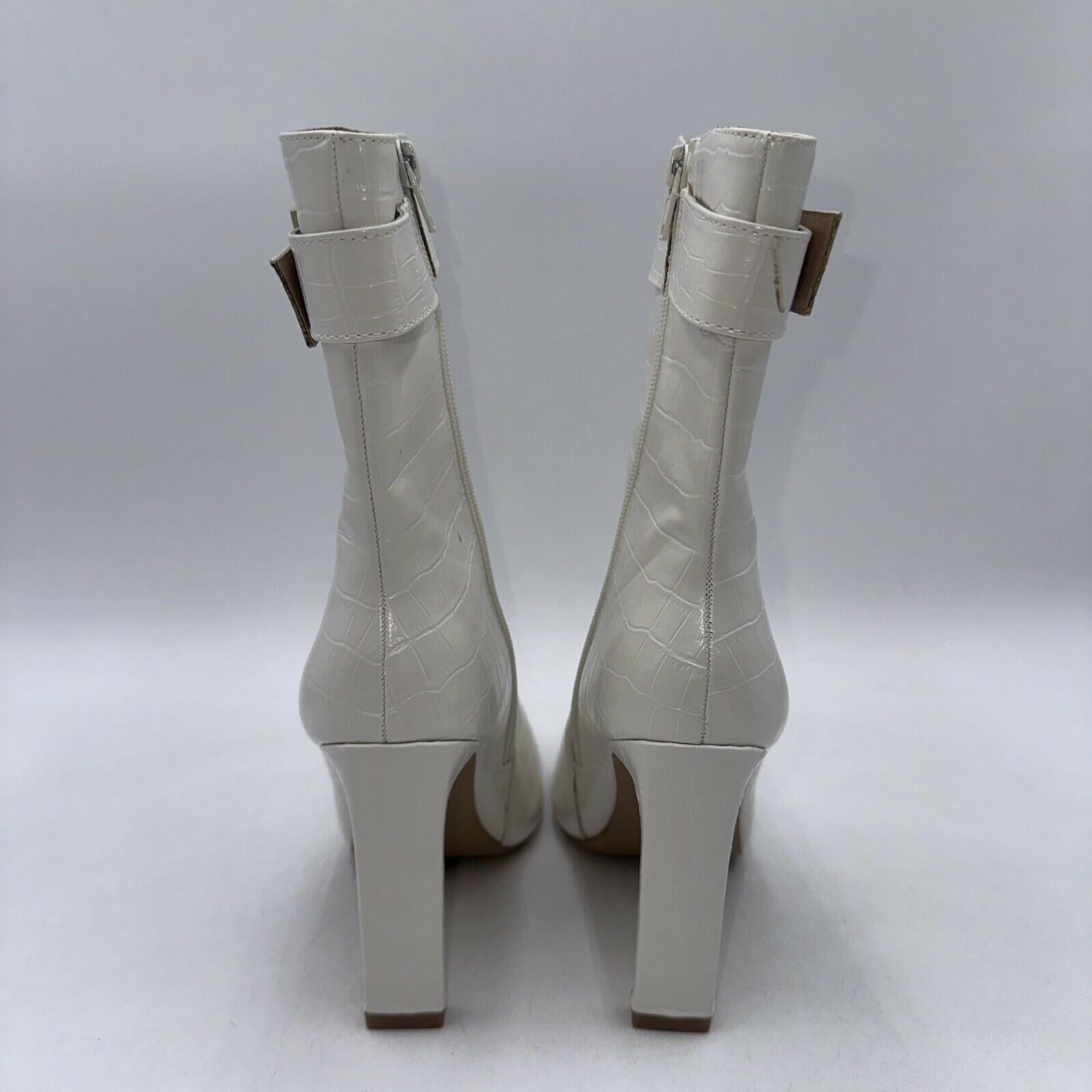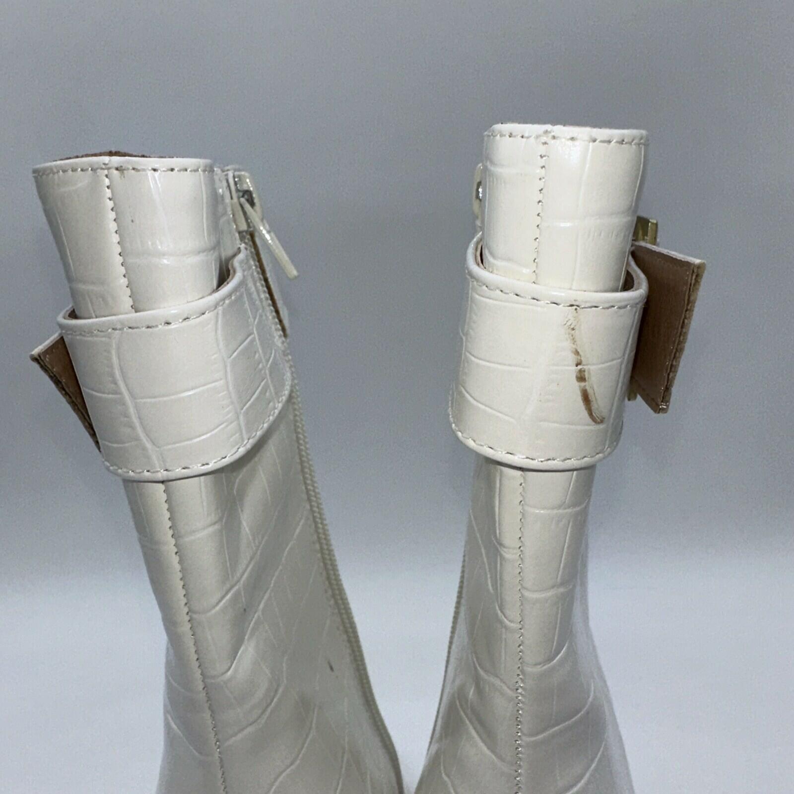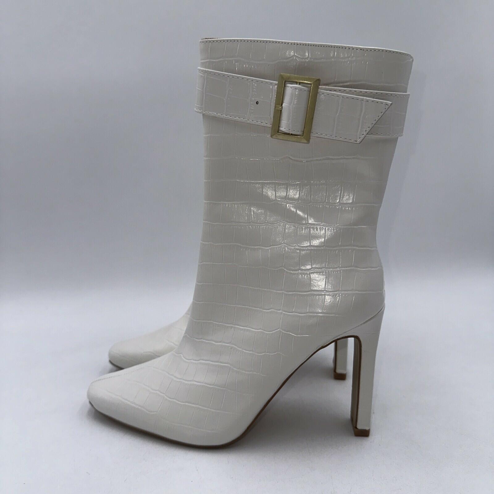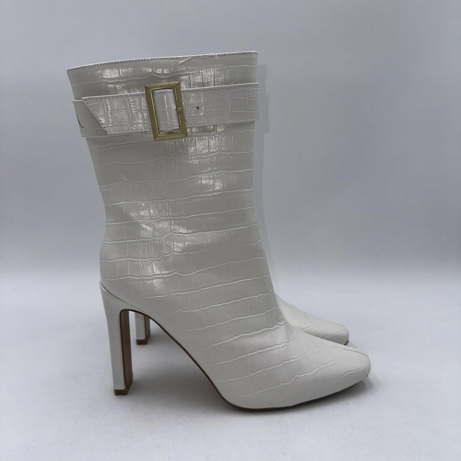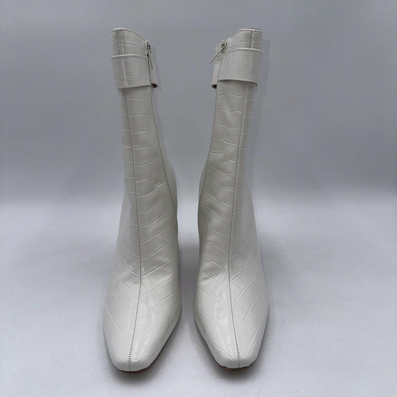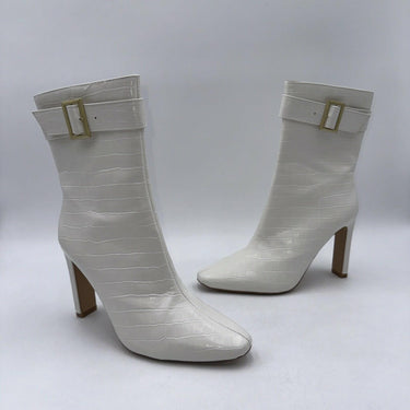 Elevate your shoe game with these Journee Collection Elanie booties. Featuring a square toe and ultra-high block heel, these white croc textured vegan leather boots are perfect for any casual occasion. The inside zipper provides a comfortable fit, while the zippered accents add a modern touch.These booties are versatile and can be worn throughout the year, making them a great addition to any wardrobe. With a standard shoe width and size 7.5, they are suitable for most women. Don't miss out on the chance to own these stylish and comfortable booties from Journee Collection.