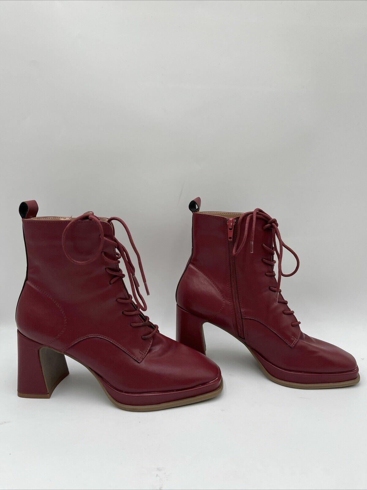 Elevate your style while keeping it comfortable with these Journee Collection Women's Tru Comfort Foam Kalindi Booties in Red. The ankle-length boots feature an almond toe shape, high block heel style, and a US shoe size of 7.5. The leather upper material is complemented by a foam insole for added comfort.
