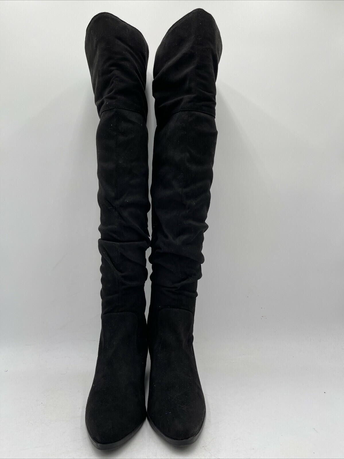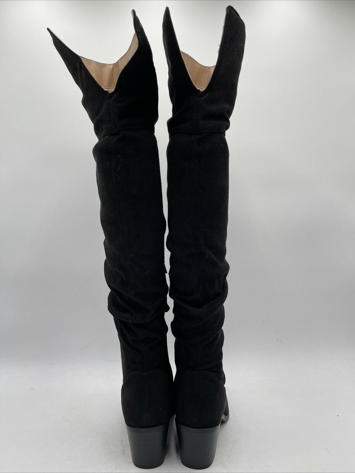 Elevate your style with these Journee Collection Women's Zivia Boots in black. The pointed toe and mid-height block heel give these riding boots a chic and sophisticated look. The synthetic upper material provides durability and comfort, while the size 6 fit ensures a snug and cozy feel. Perfect for any occasion, these boots can be dressed up or down to suit your style. Add these to your shoe collection today for a touch of class and elegance.
