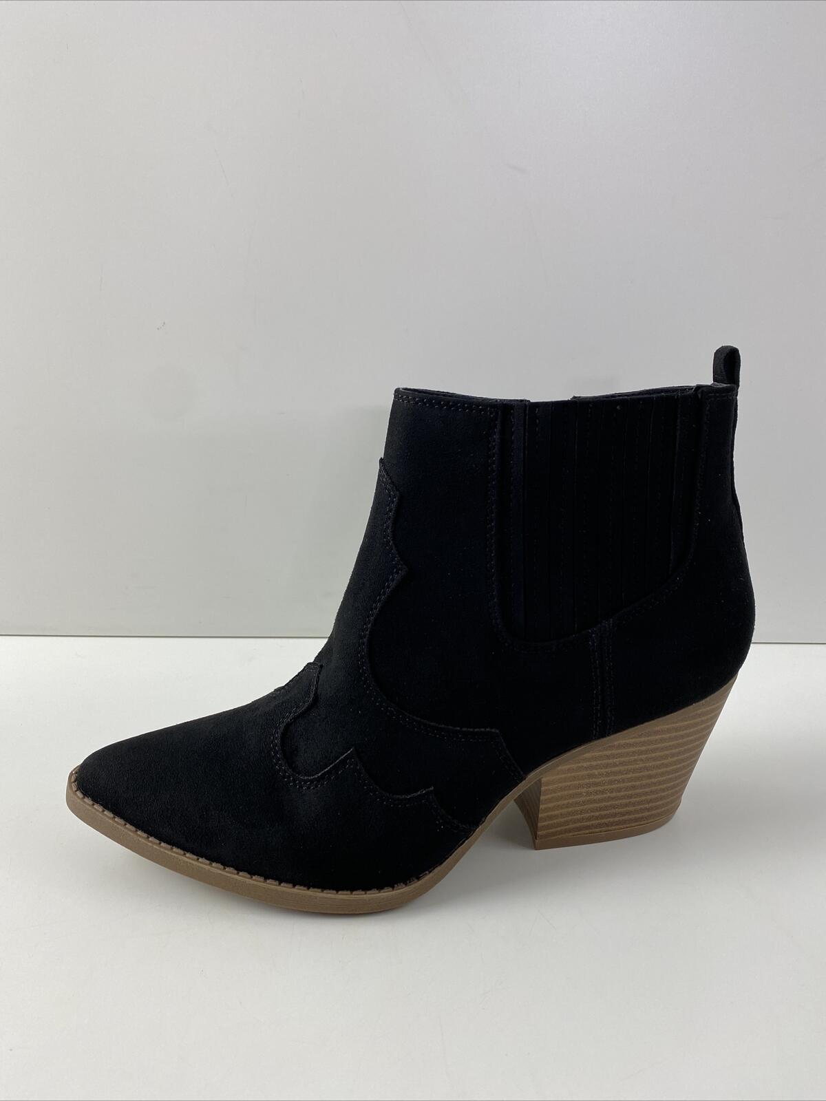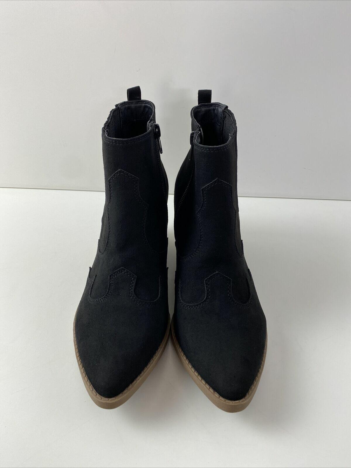 Kaari Blue CHARLIE Black Pointed Toe Side Zip Block Heel Ankle Boots Womens 7.5M