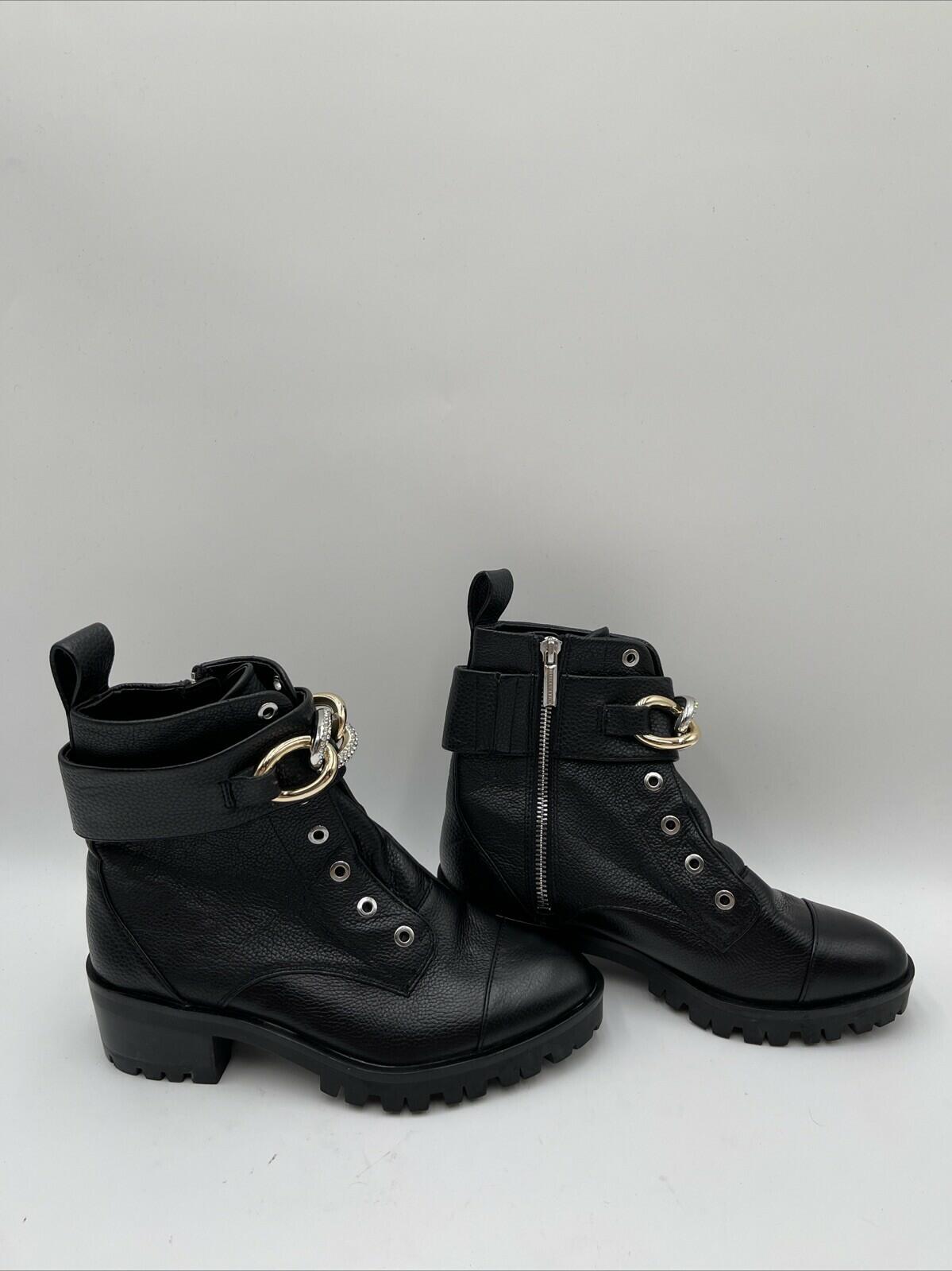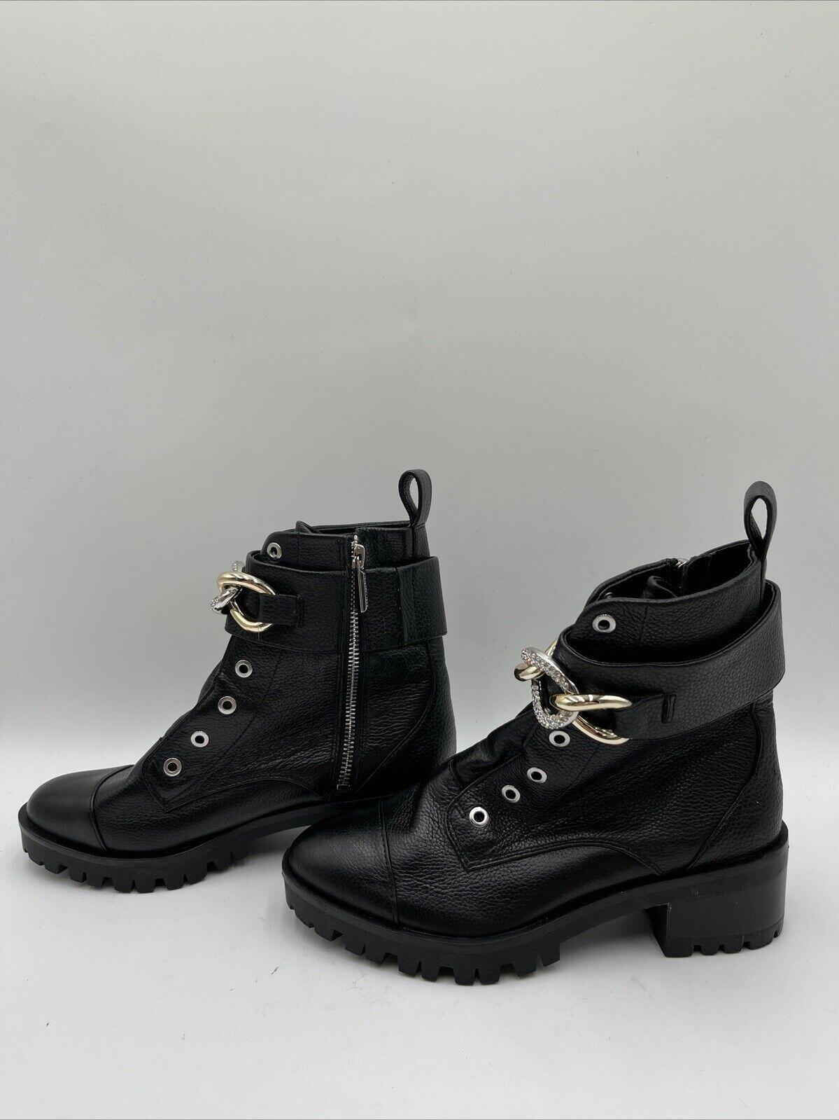Karl Lagerfeld Paris Women's Pepper Rhinestone Curb Link Combat Boots Black 7.5M - Very Good - Ufashion