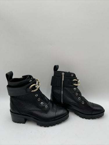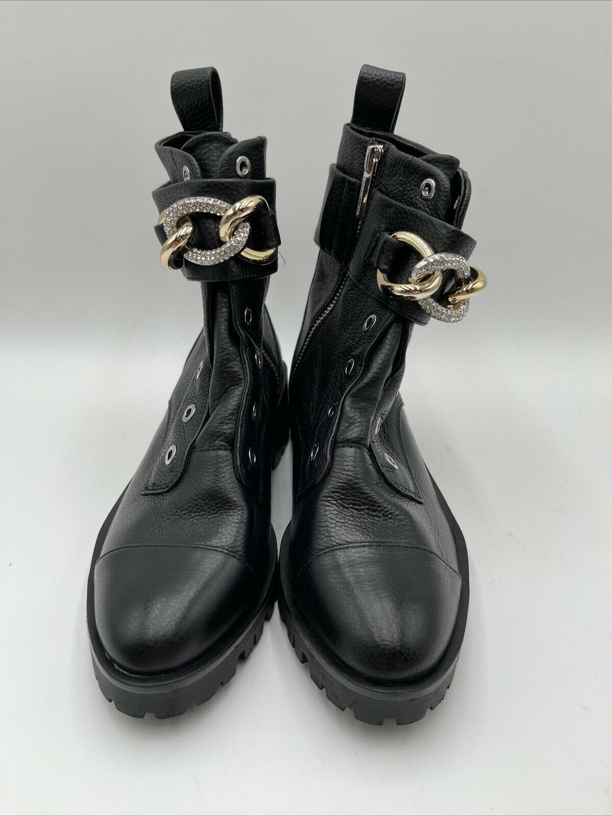 Karl Lagerfeld Paris Women's Pepper Rhinestone Curb Link Combat Boots Black 7.5M - Very Good