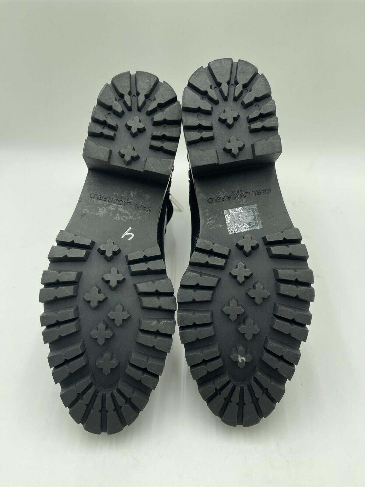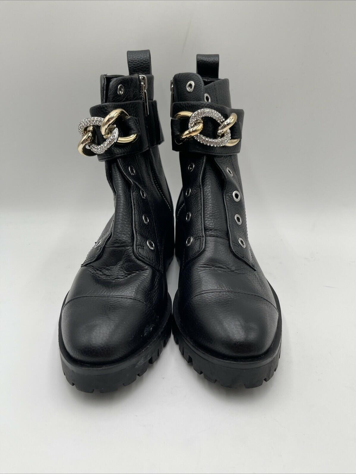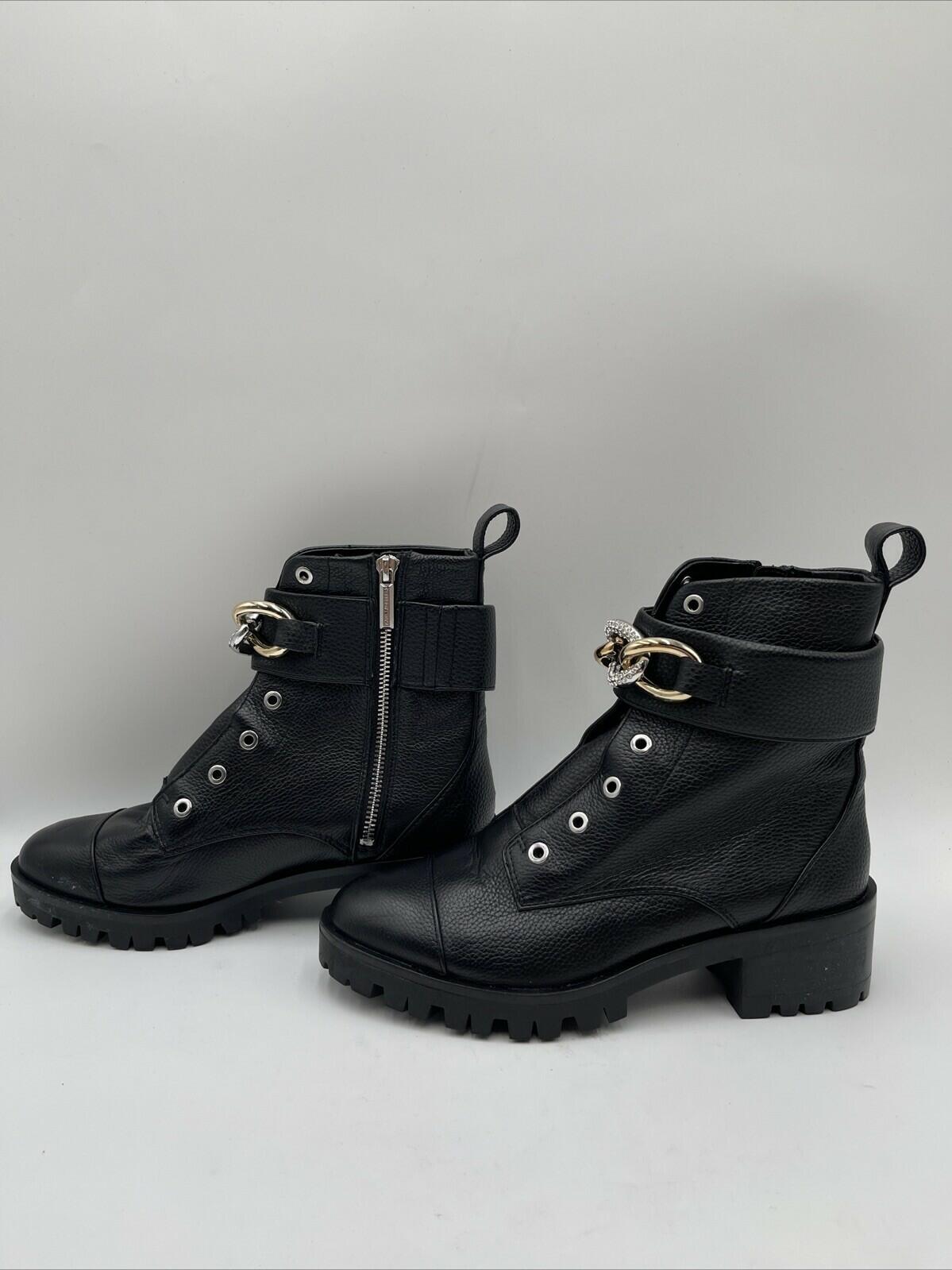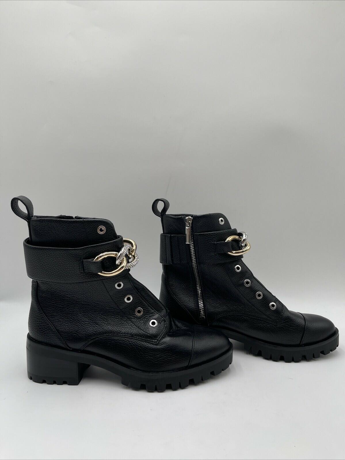 Karl Lagerfeld Paris Women's Pepper Rhinestone Curb Link Combat Boots Black 8.5M - Very Good - Ufashion
