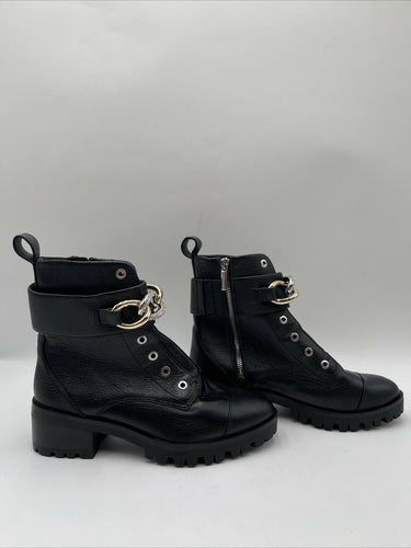 Karl Lagerfeld Paris Women's Pepper Rhinestone Curb Link Combat Boots Black 8.5M - Very Good