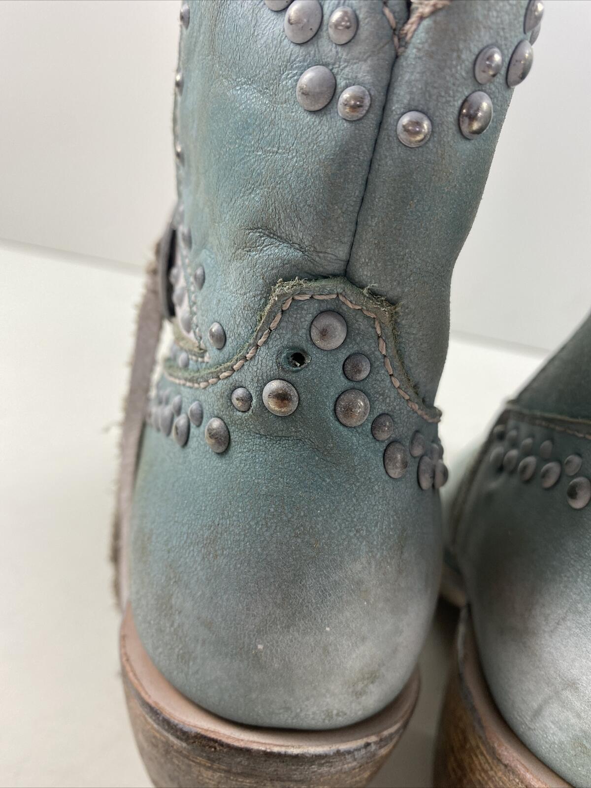 Liberty Black Studded Blue Leather Snip Toe Side Zip Western Booties Womens 7The boots are in good condition