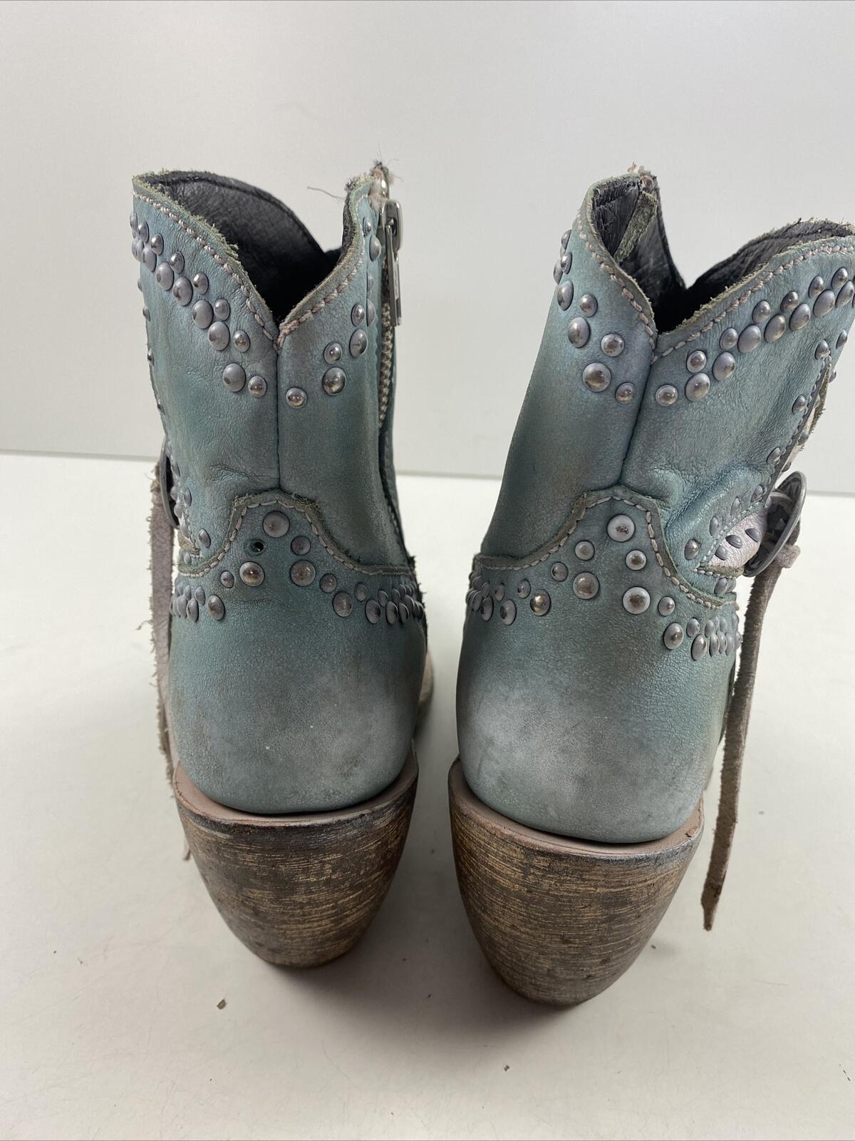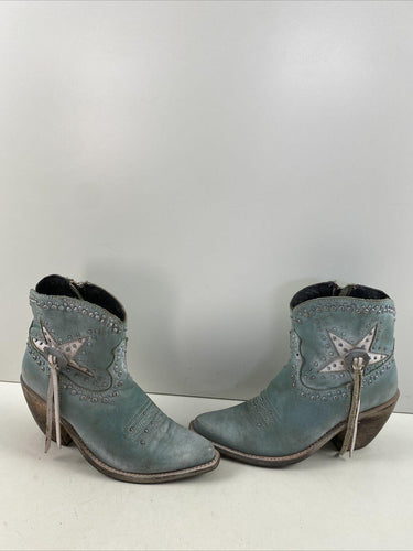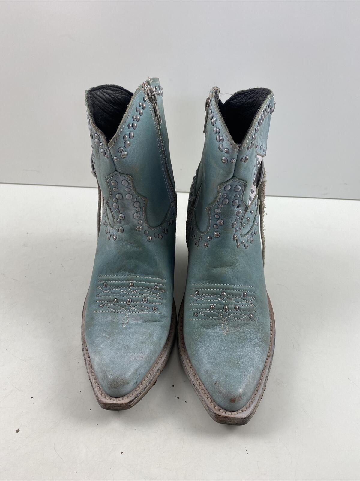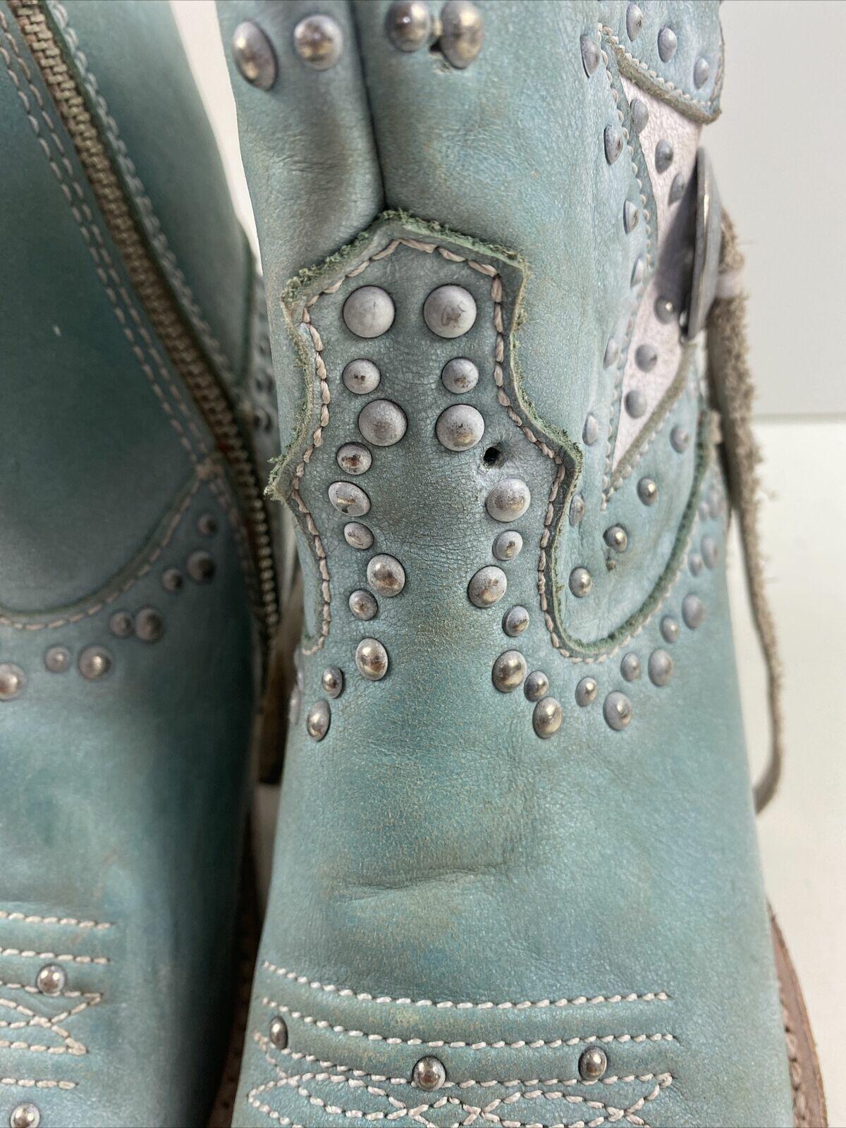 Liberty Black Studded Blue Leather Snip Toe Side Zip Western Booties Women’s 7