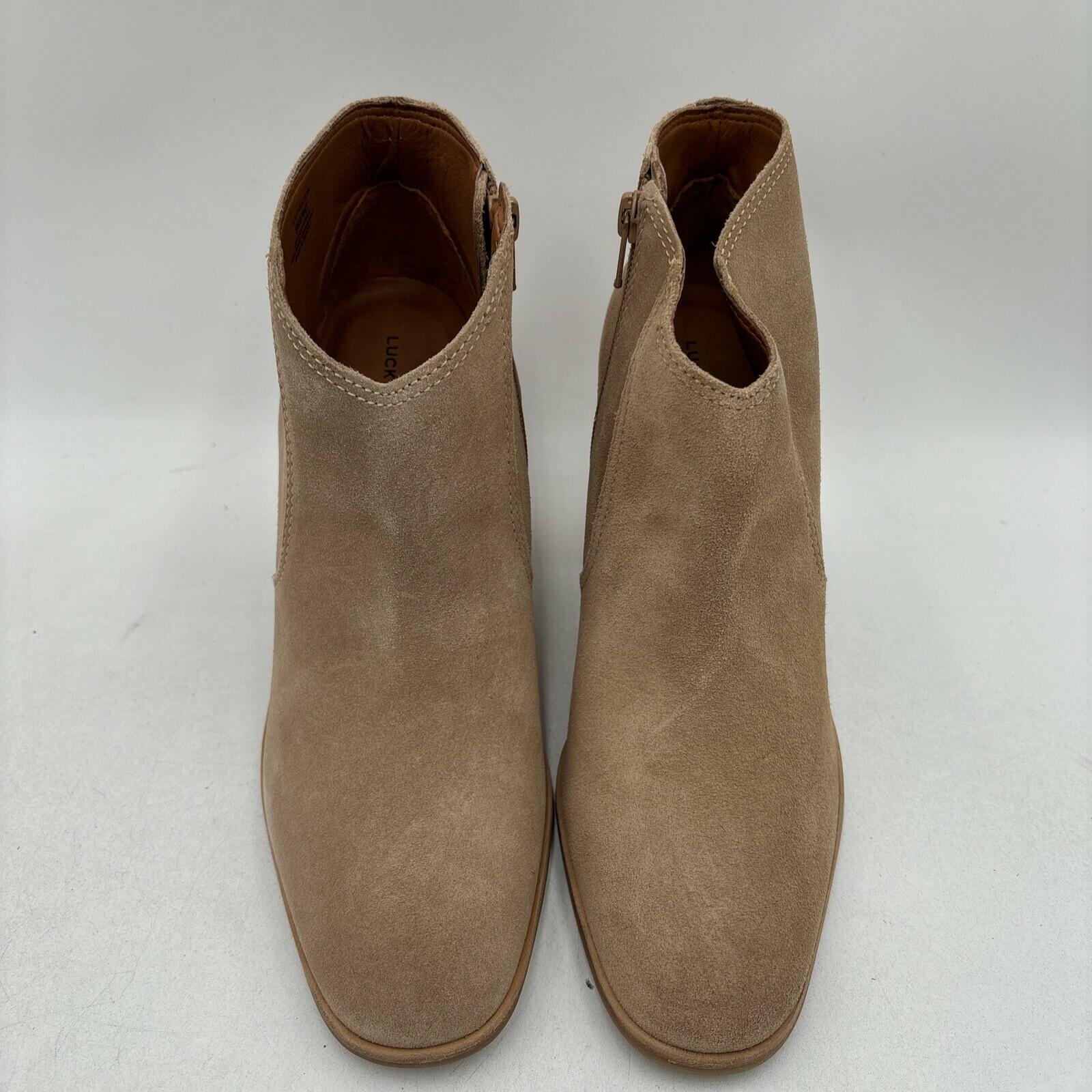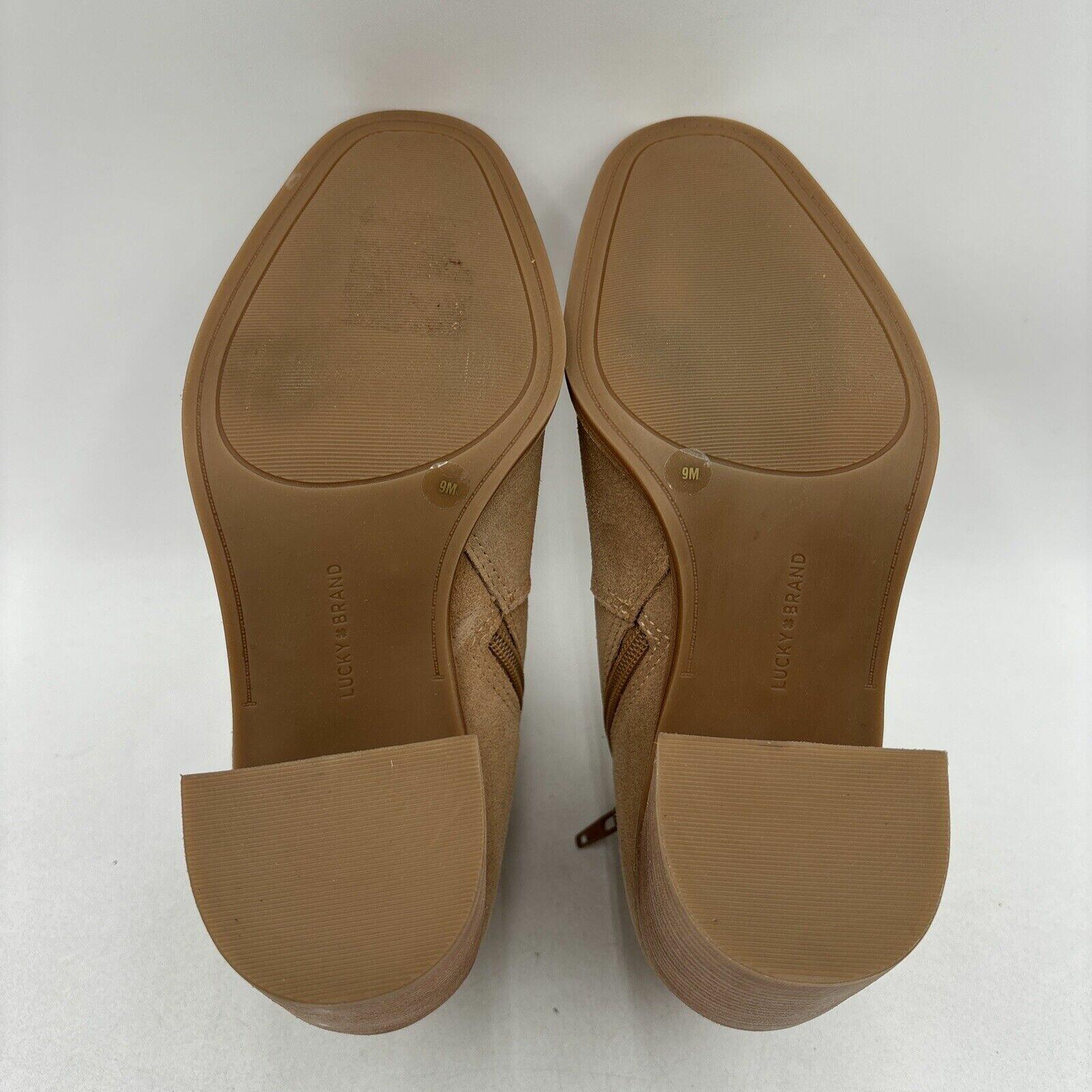 Lucky Brand PELLYON Tan Suede Pointed Toe Side Zip Western Booties, Size 9M - Very Good - Ufashion