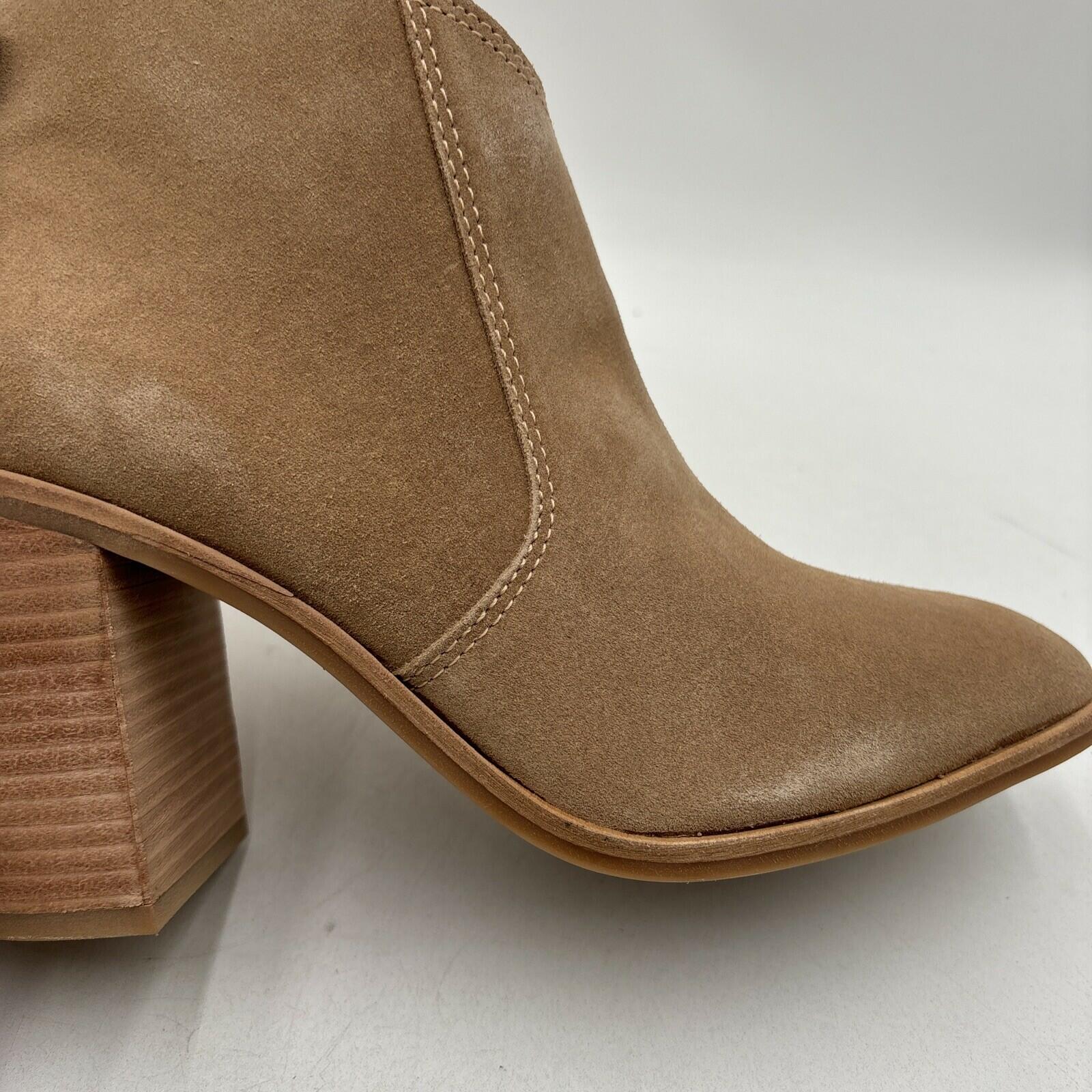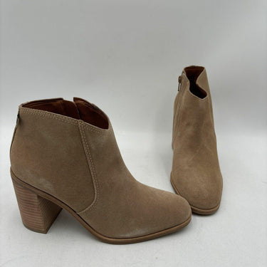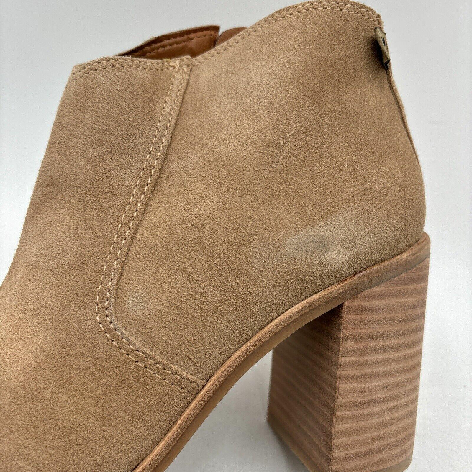 Lucky Brand PELLYON Tan Suede Pointed Toe Side Zip Western Booties, Size 9M - Very Good