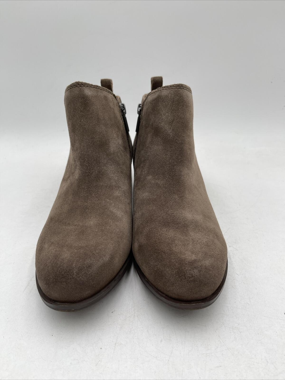 Elevate your style with these fashionable ankle boots from Lucky Brand. These booties feature a chic suede upper and a low block heel for ultimate comfort. The zip closure makes them easy to slip on and off while the ankle height adds a touch of sophistication. The carafe brown color is perfect for fall and winter. These boots are a size 9 in US measurement or size 40 in European measurement, making them a great fit for any woman.