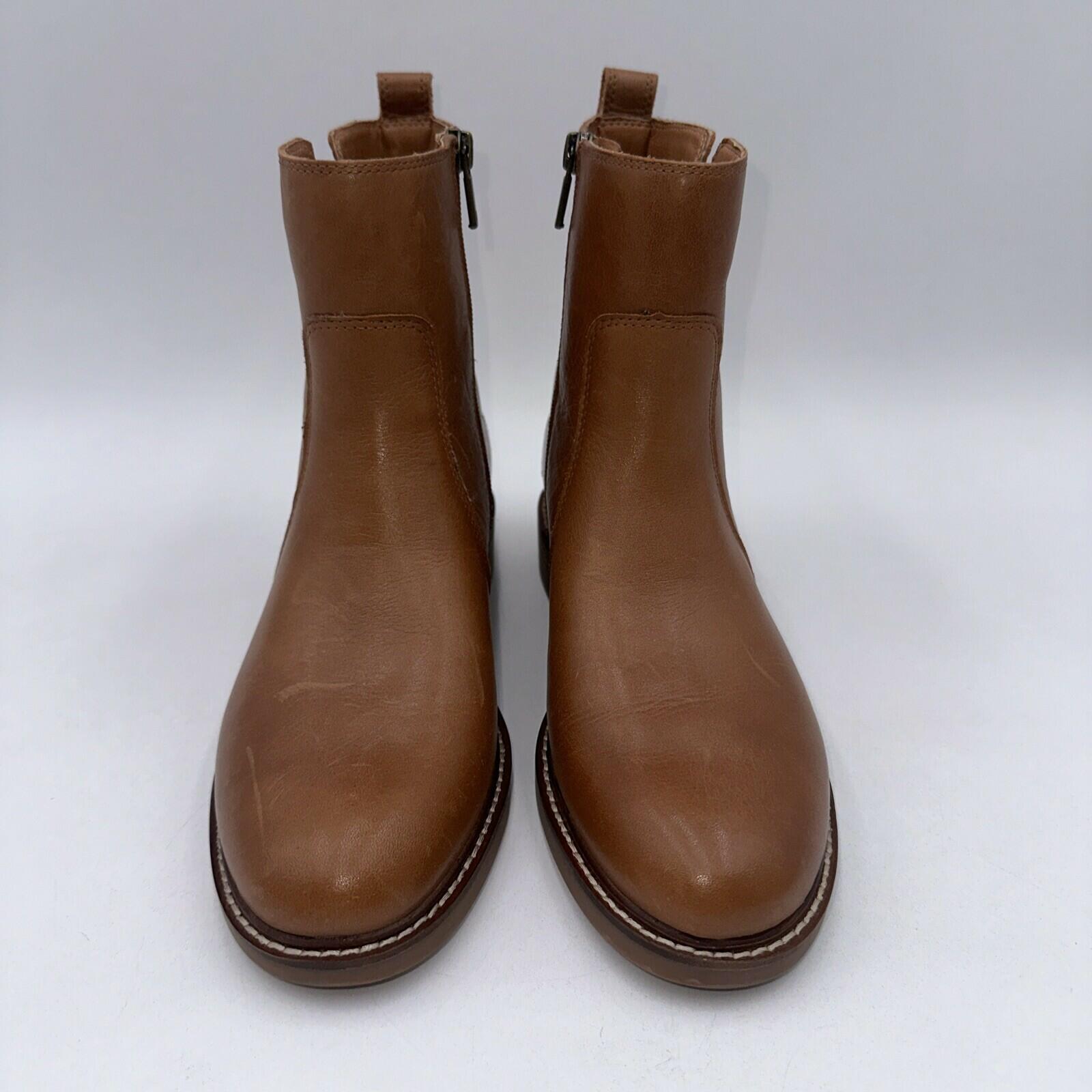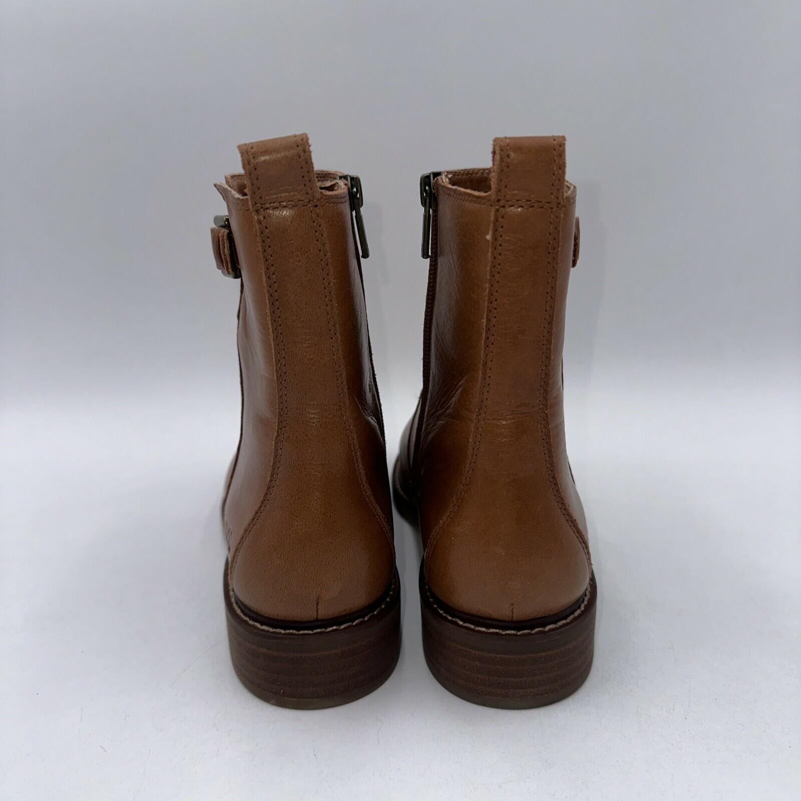 Elevate your shoe game with these stylish Lucky Brand Women's Quendy Bootie Ankle Boots in Brown. The boots come in size 7.5 M and feature a synthetic lining material, low block heel style, and a zip closure. The ankle bootie style is perfect for any casual or dressy occasion and will complement any outfit. The leather upper material gives the boots a luxurious look and feel, while the EU Shoe Size of 37.5 ensures a comfortable fit. The boots are perfect for women who want to make a fashion statement without sacrificing comfort.- bottom soles are slightly worn
