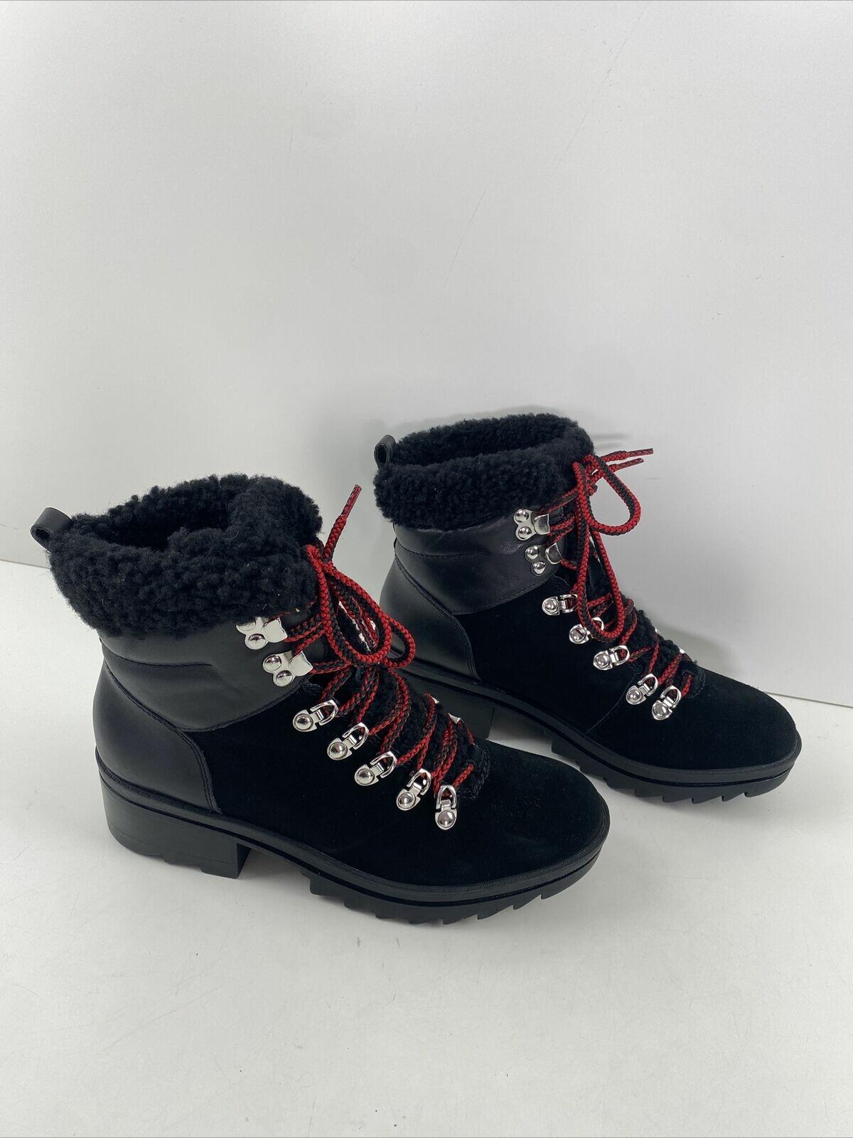 Marc Fisher BRYLEE Black Suede/Leather Lace Up Block Heel Ankle Boots Womens 7 M