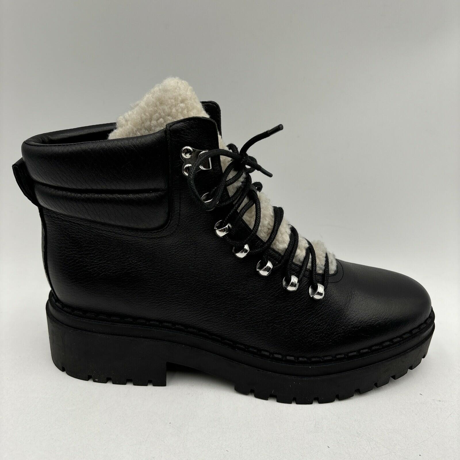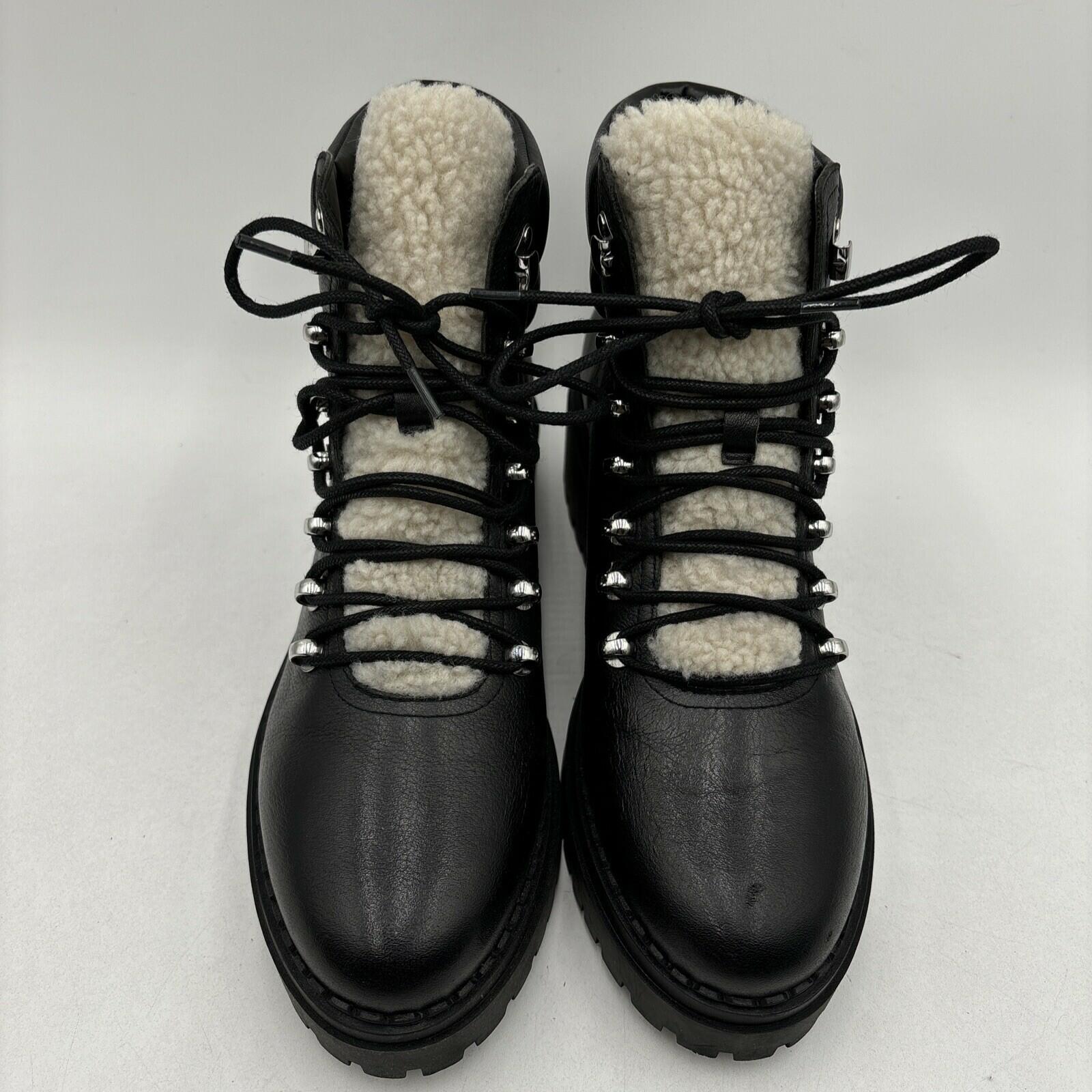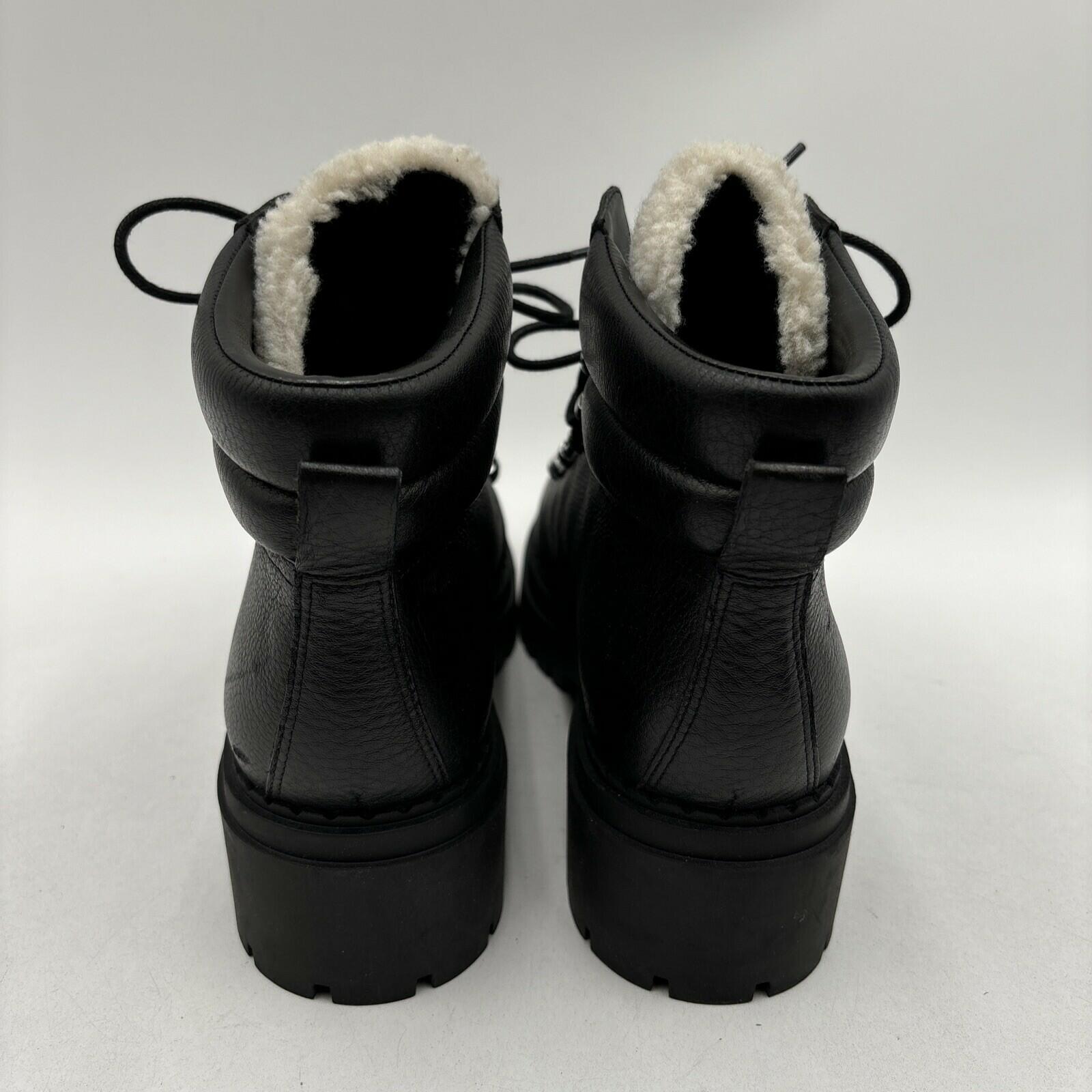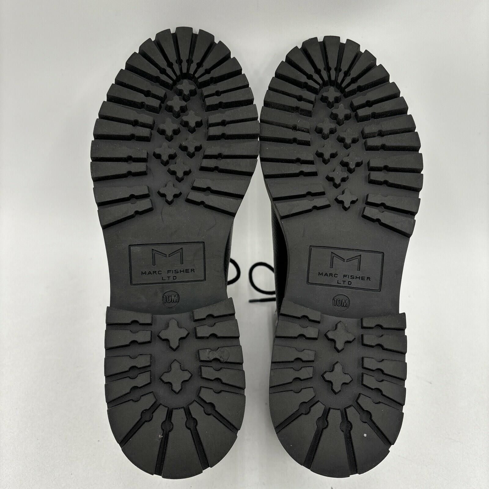 Marc Fisher NALINA Black Leather/Suede Lace Up Lugged Sole Ankle Boots Women 10M - Very Good