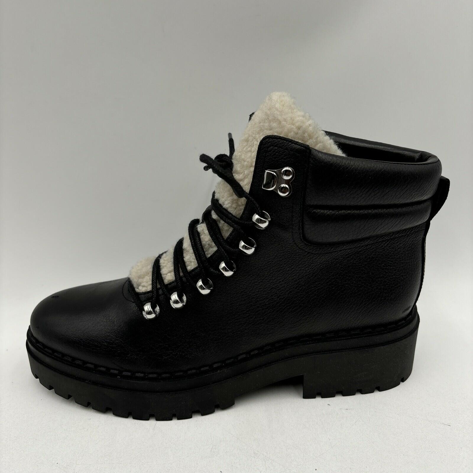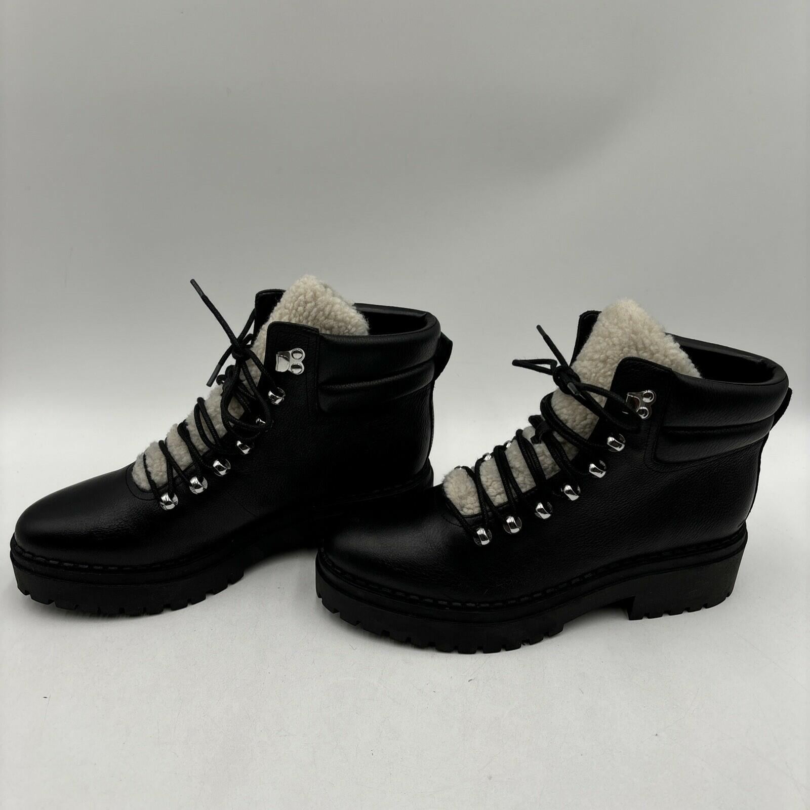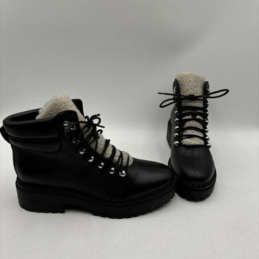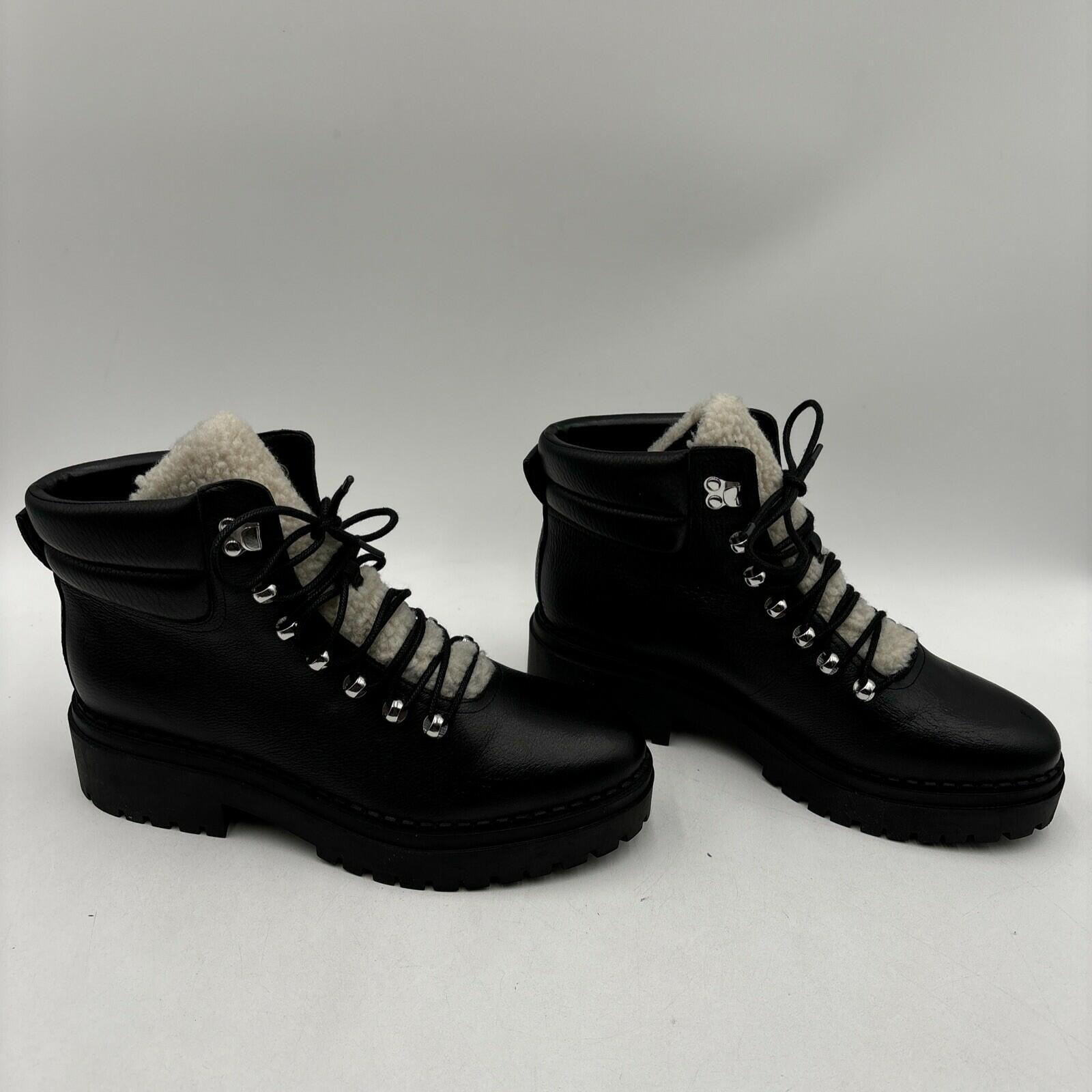 Marc Fisher NALINA Black Leather/Suede Lace Up Lugged Sole Ankle Boots Women 10M - Very Good