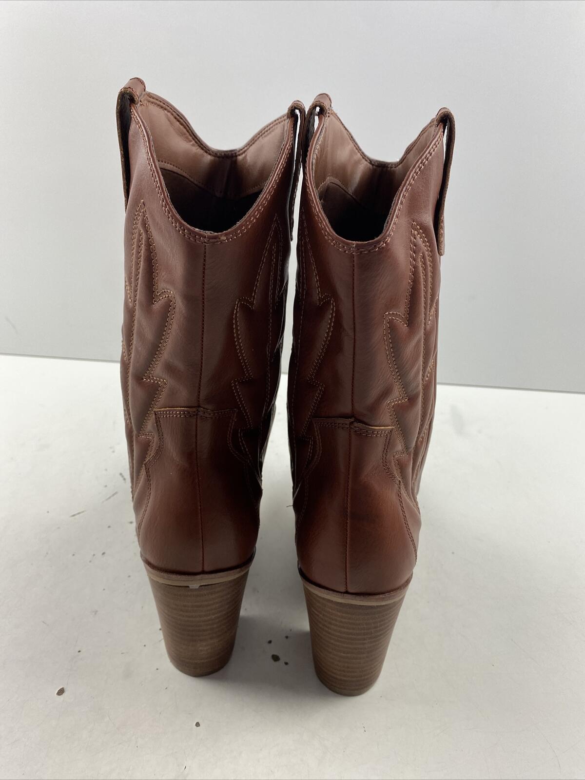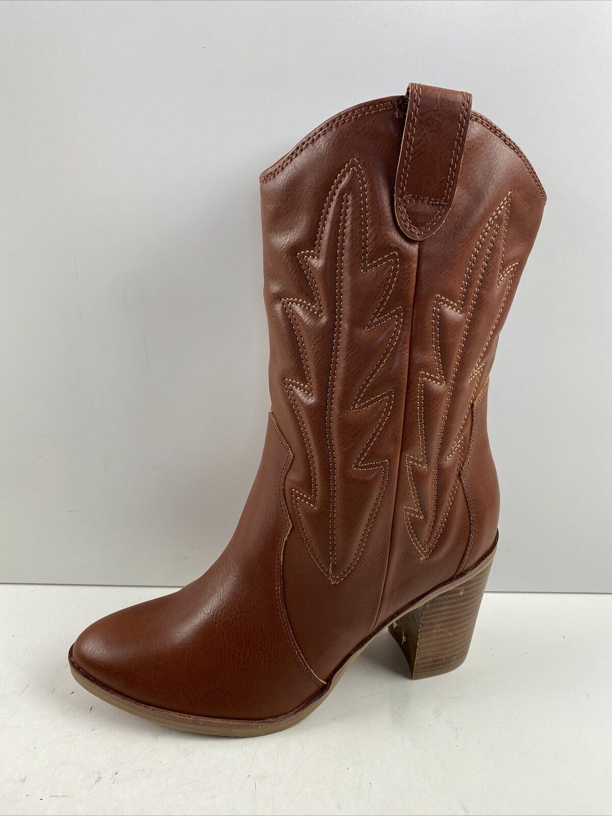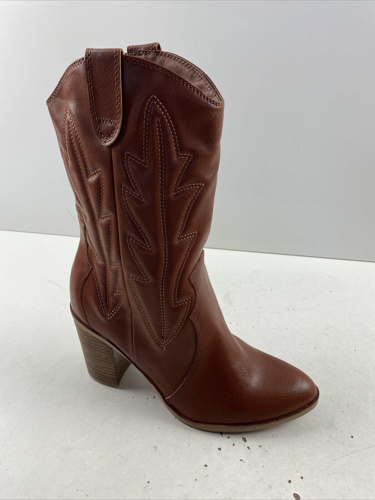 MIA ‘RAYLIN’ Brown Faux Leather Round Toe Pull On Block Heel Boots Women’s 7.5 M - Ufashion